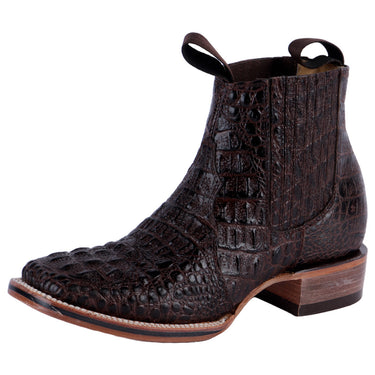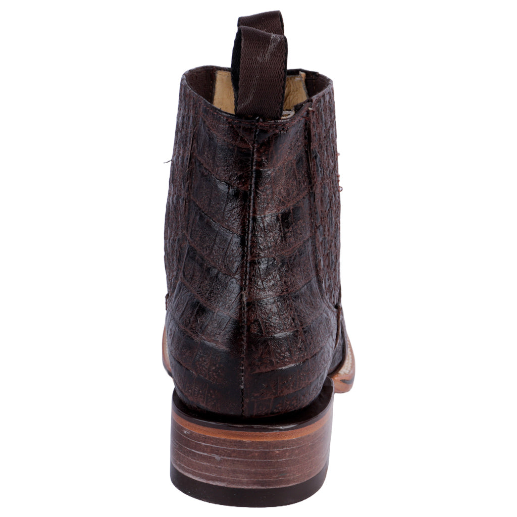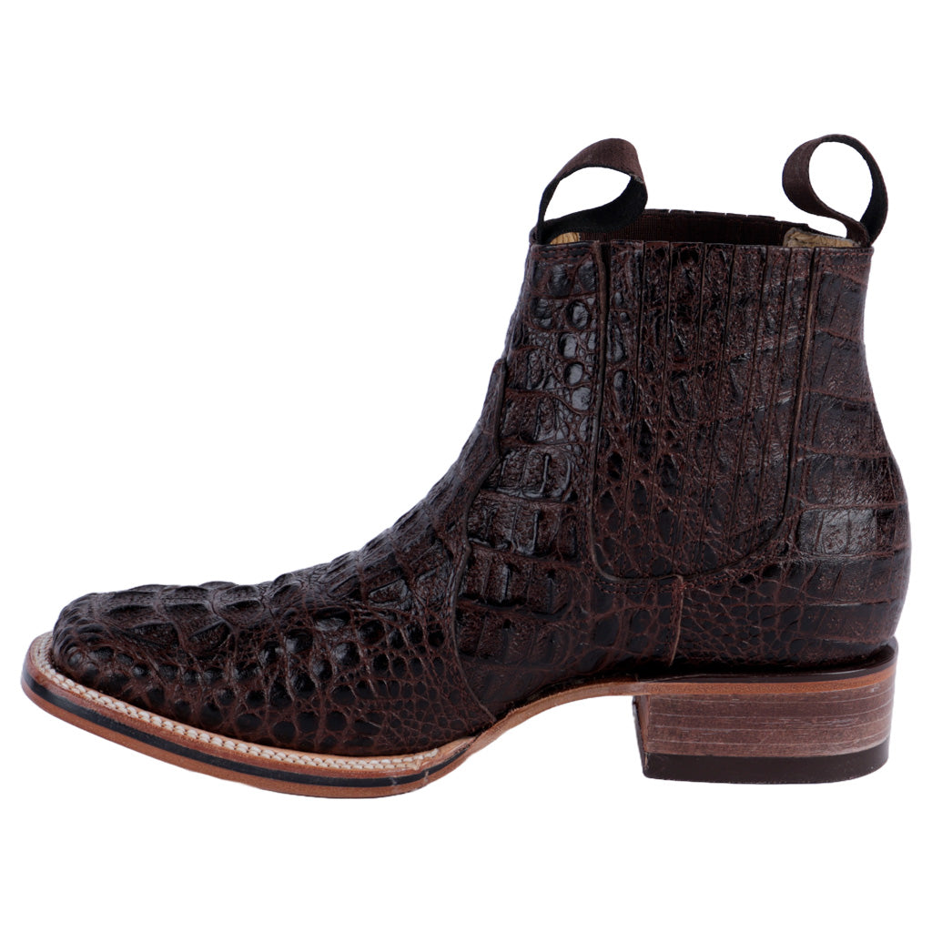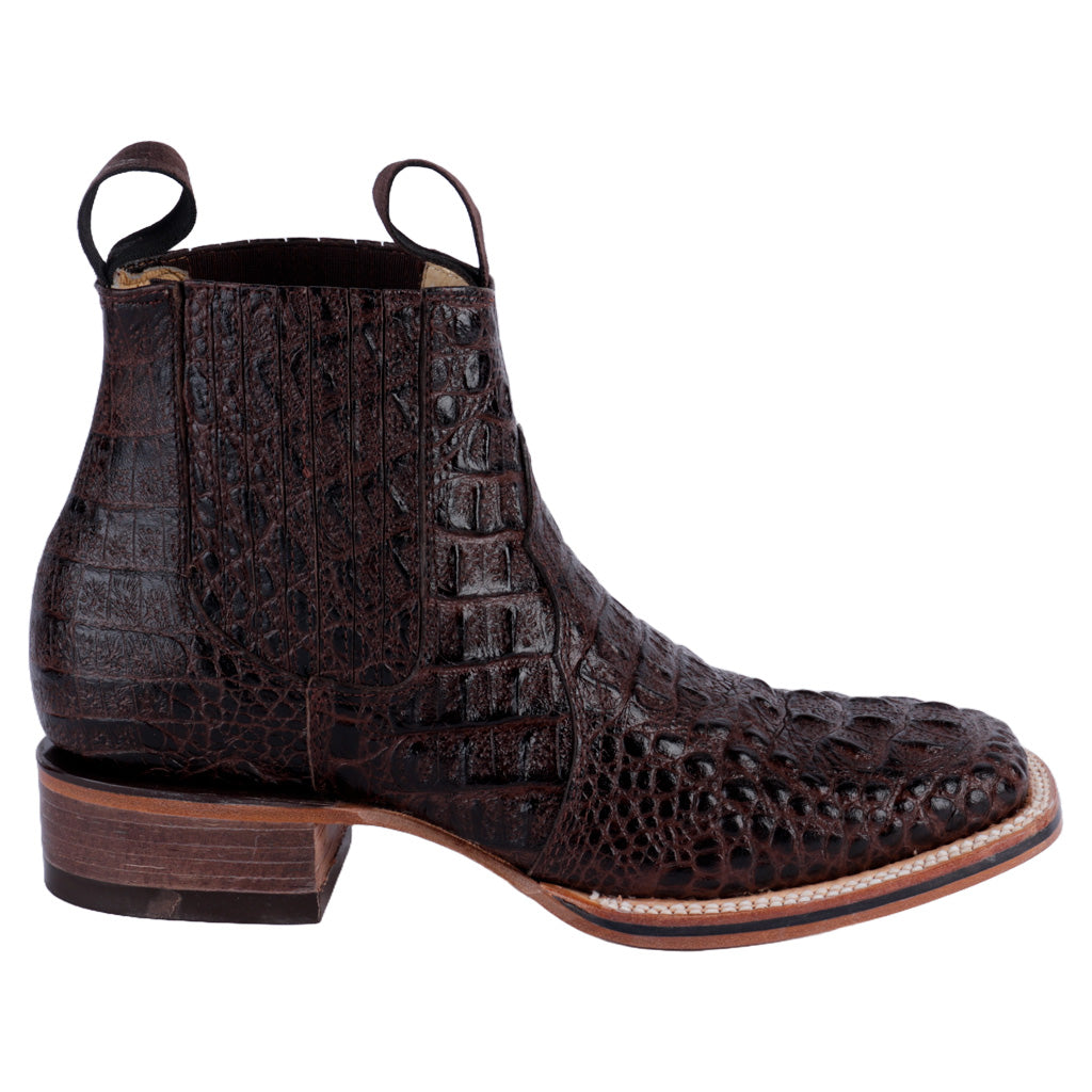 La elección es clara. Para botas vaqueras que combinan tradición y modernidad, Zapatería Fratello es tu destino. Con las botas vaqueras de Fratello, los hombres están listos para cualquier aventura. Sigue la senda del vaquero. ¡Adquiere tus botas Fratello hoy! Fratello botín vaquero para hombre, en color café oscuro, modelo elaborado en material piel, cuenta con grabado moderno texturizado reptil, tipo de ajuste pull on con elásticos a los costados, en color café claro, suela en material cuero y tacón de bloque, antideslizante, con altura de 4 cm, forro piel, tallas disponibles 25 al 29 incluyendo medias tallas, modelo con horma normal (talla fiel), te sugerimos adquirir talla habitual. Haz que cada paso cuente con Zapatería Fratello, calzado 100% mexicano. Ponte zapatos, no límites. Compra los tuyos ahora.