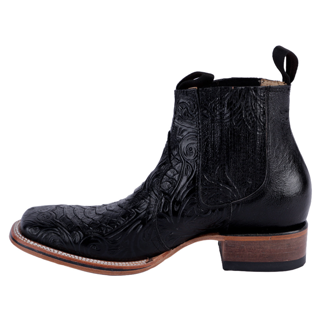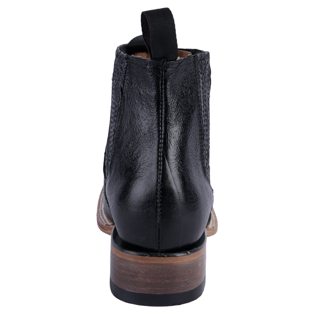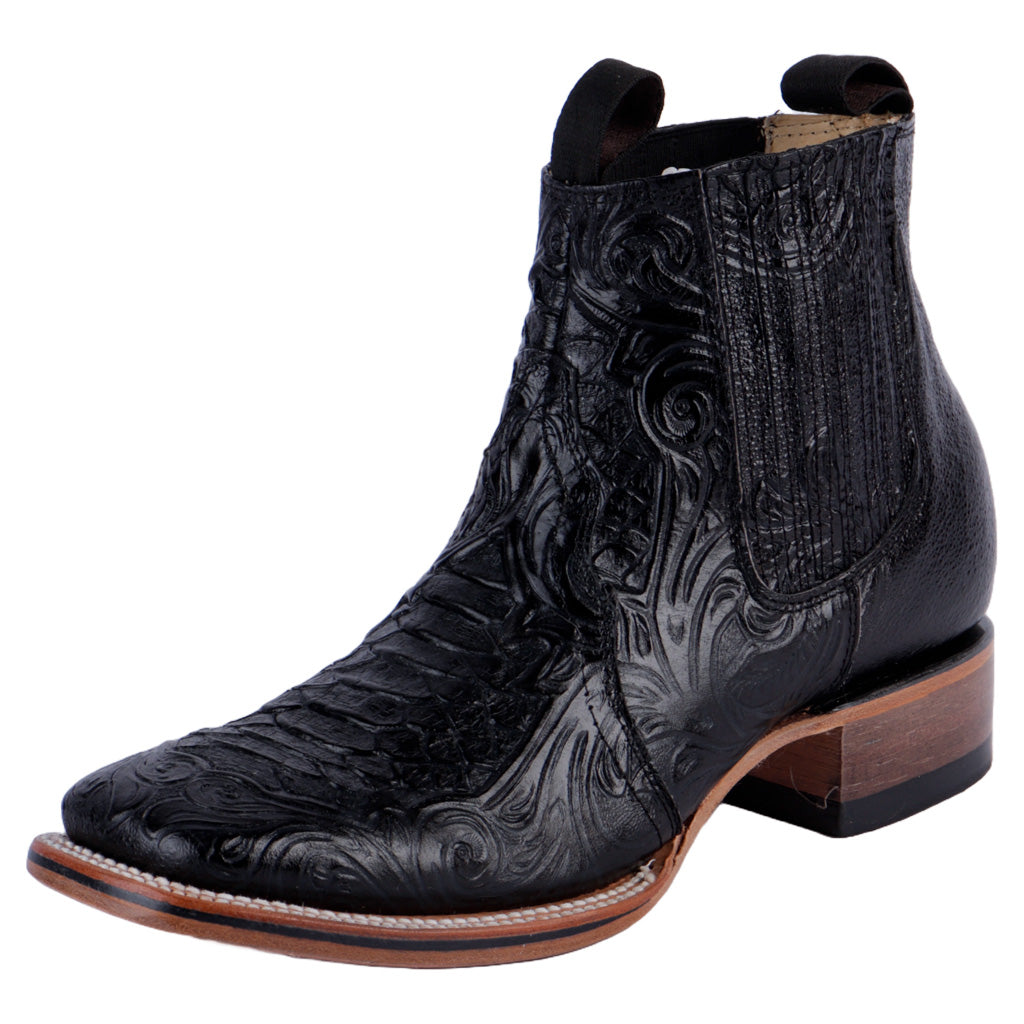 La elección es clara. Para botas vaqueras que combinan tradición y modernidad, Zapatería Fratello es tu destino. Con las botas vaqueras de Fratello, los hombres están listos para cualquier aventura. Sigue la senda del vaquero. ¡Adquiere tus botas Fratello hoy! Fratello botín vaquero para hombre, en color negro, modelo elaborado en material piel acabado “Hibrido Pitón”, tubo de 14 cm y circunferencia de 30 cm, cuenta con cerquillo cosido y relieve texturizado en forma de víbora, tipo de ajuste slip on, cuenta con tacón de bloque, en material sintético, antideslizante, suela con un alto de 4 cm, forro textil, tallas disponibles 25 al 29 incluyendo medias tallas, modelo con horma normal (talla fiel), te sugerimos adquirir talla habitual. Haz que cada paso cuente con Zapatería Fratello, calzado 100% mexicano. Ponte zapatos, no límites. Compra los tuyos ahora.