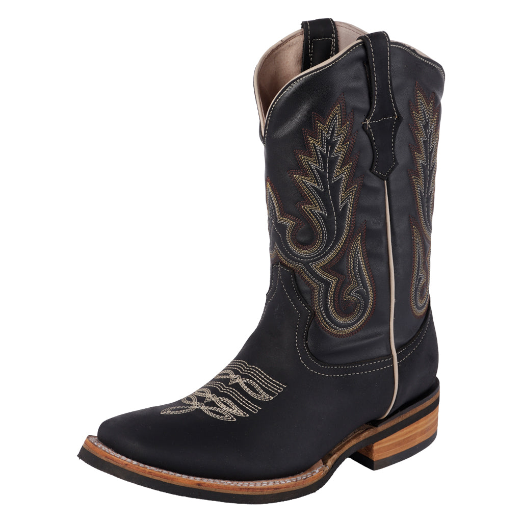 Estilo rudo y detalles elegantes. Las botas vaqueras Fratello combinan el trabajo artesanal con un diseño pensado para el hombre actual. Caña media, tacón recto y un look que impone. ¡Haz clic y pisa con fuerza! Fratello botas industriales para mujer, modelo en color negro, elaborado en piel, tubo de 10 cm de altura, y 37 cm de circunferencia, tipo de ajuste pull on, con bordado, suela sintética con un alto de 4 cm, suela sintética, forro textil, tallas disponibles 25/29 incluyendo medias tallas, modelo con horma normal (talla fiel), te sugerimos adquirir talla habitual. Haz que cada paso cuente con Zapatería Fratello, calzado 100% mexicano. Ponte zapatos, no límites. Compra los tuyos ahora.