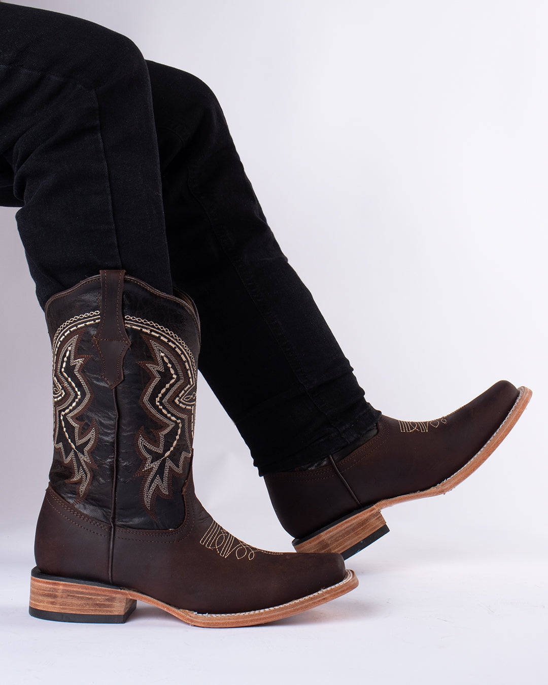 Estilo del viejo oeste con un giro moderno. Las botas vaqueras Fratello combinan diseño robusto con detalles únicos que las hacen inconfundibles. Perfectas para cualquier ocasión. ¡Compra ahora y pisa con tradición! Fratello bota vaquera para hombre, en color chocolate, modelo elaborado en piel, tubo de 28 cm de altura, y 38 cm de circunferencia, cuenta con bordado, tipo de cierre pull on suela sintética de cuero, tacón ancho, con un alto de 4 cm forro de piel, tallas disponibles 25/29 incluyendo medias tallas, modelo con horma normal (talla fiel), te sugerimos adquirir talla habitual. Haz que cada paso cuente con Zapatería Fratello, calzado 100% mexicano. Ponte zapatos, no límites. Compra los tuyos ahora.
