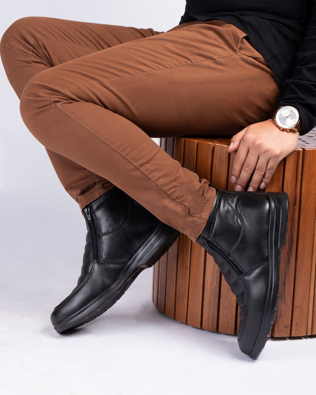 Clásicos con un giro moderno. Estos botines para hombre de Fratello tienen líneas limpias, suela resistente y un estilo que no pasa de moda. Perfectos para destacar con discreción. ¡Haz clic y hazlos tuyos! Fratello botines para hombre, modelo en color negro, elaborado en piel, tubo de 12 cm de altura, y 34 cm de circunferencia, tipo de ajuste con cremallera en los costados, suela sintética con un alto de 3 cm, forro de piel, tallas disponibles 25/29 incluyendo medias tallas, modelo con horma normal (talla fiel), te sugerimos adquirir talla habitual. Haz que cada paso cuente con Zapatería Fratello, calzado 100% mexicano. Ponte zapatos, no límites. Compra los tuyos ahora.
