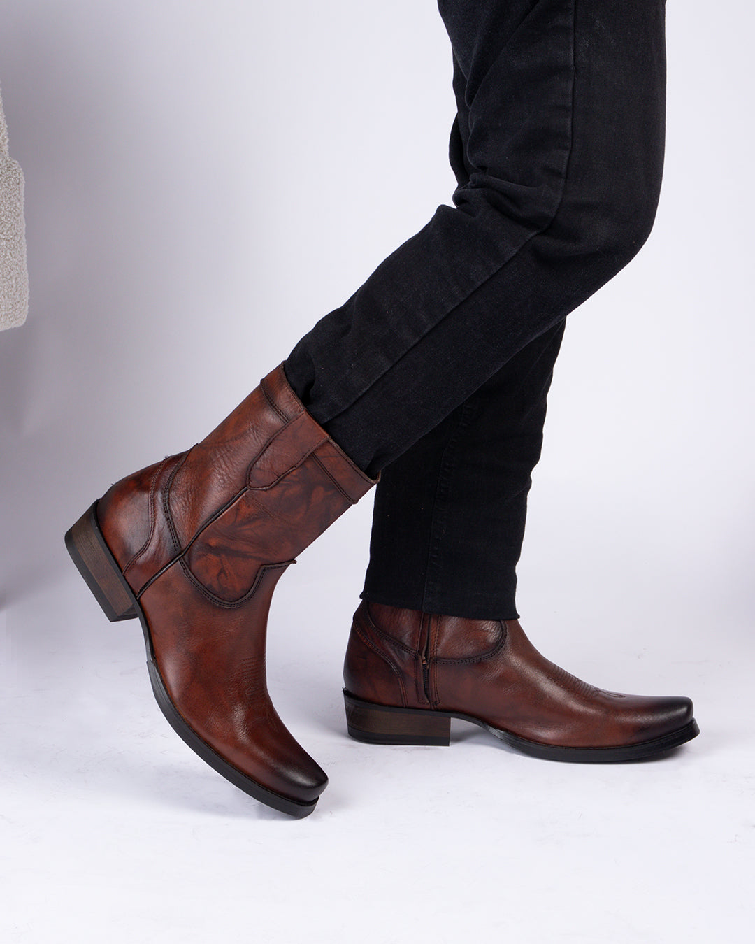 El detalle que completa tu look western. Estas botas vaqueras Fratello cuentan con bordado artesanal, tacón firme y estructura sólida. Ideales para reflejar autenticidad en cada paso. ¡Agrégalas a tu carrito y hazlas tuyas! Fratello botas vaqueras para hombre, modelo en color shedrón, elaborado en piel, tubo de 22 cm de altura, y 33 cm de circunferencia, tipo de ajuste con cremallera en lateral interno, suela de cuero, tacón ancho, con un alto de 4 cm, forro de piel, tallas disponibles 25/29 incluyendo medias tallas, modelo con horma normal (talla fiel), te sugerimos adquirir talla habitual. Haz que cada paso cuente con Zapatería Fratello, calzado 100% mexicano. Ponte zapatos, no límites. Compra los tuyos ahora.