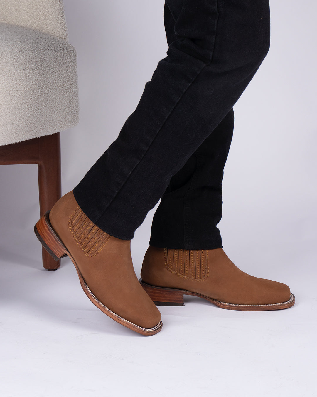 Los botines Fratello reflejan fuerza y elegancia en un solo diseño. Su acabado resistente y silueta moderna son ideales para hombres que se mantienen activos con buen gusto. ¡Compra online y pisa con personalidad! Fratello botines para hombre, modelo en color café claro, elaborado en piel, tubo de 15 cm de altura, y 30 cm de circunferencia, tipo de ajuste pull on, con elástico en los costados, suela de cuero, suela cosida, tacón ancho, con un alto de 4 cm, forro de piel, tallas disponibles 25/29 incluyendo medias tallas, modelo con horma normal (talla fiel), te sugerimos adquirir talla habitual. Haz que cada paso cuente con Zapatería Fratello, calzado 100% mexicano. Ponte zapatos, no límites. Compra los tuyos ahora.