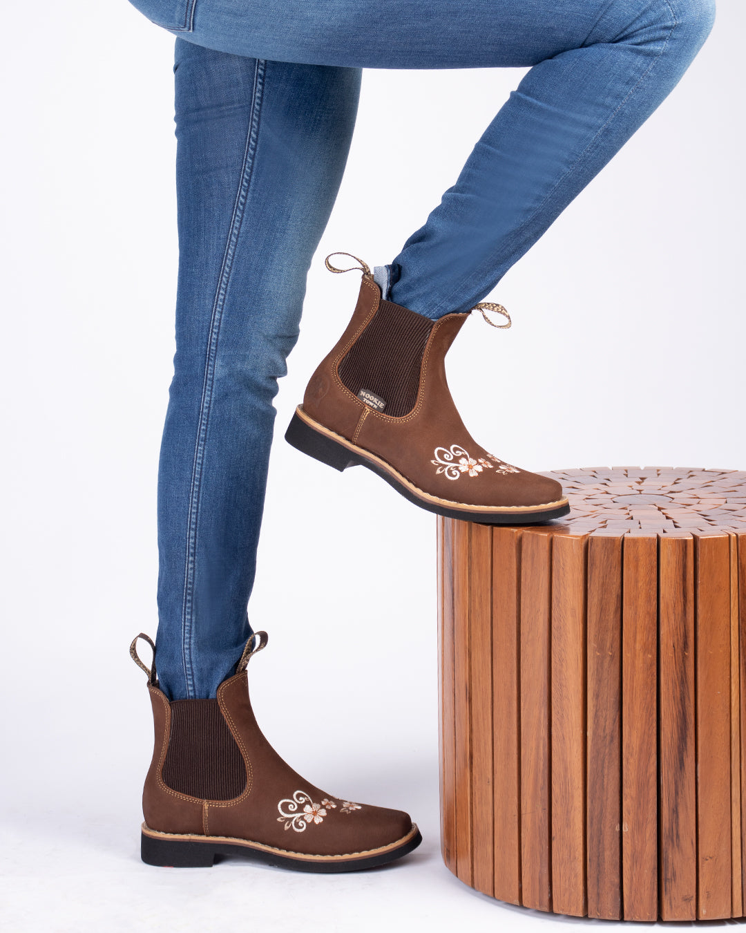 Los botines vaqueros Fratello son perfectas para destacar tu estilo sin esfuerzo. Su diseño versátil y atemporal te permite llevarlas con todo. De la ciudad al campo, siempre te verás increíble. ¡Haz clic y encuentra tu nuevo par favorito! Fratello botín vaquera para mujer, en color café, modelo elaborado en piel, tubo de 24 cm de altura, y 29 cm de circunferencia, cuenta con bordado de flores, tipo de cierre con elástico al tono suela sintética de hule, cuenta con tacón de bloque, con un alto de 3 cm forro sintético, tallas disponibles 22/26 incluyendo medias tallas, modelo con horma normal (talla fiel), te sugerimos adquirir talla habitual. Haz que cada paso cuente con Zapatería Fratello, calzado 100% mexicano. Ponte zapatos, no límites. Compra los tuyos ahora.