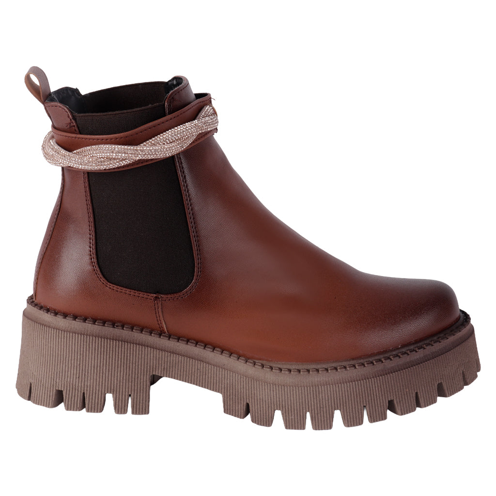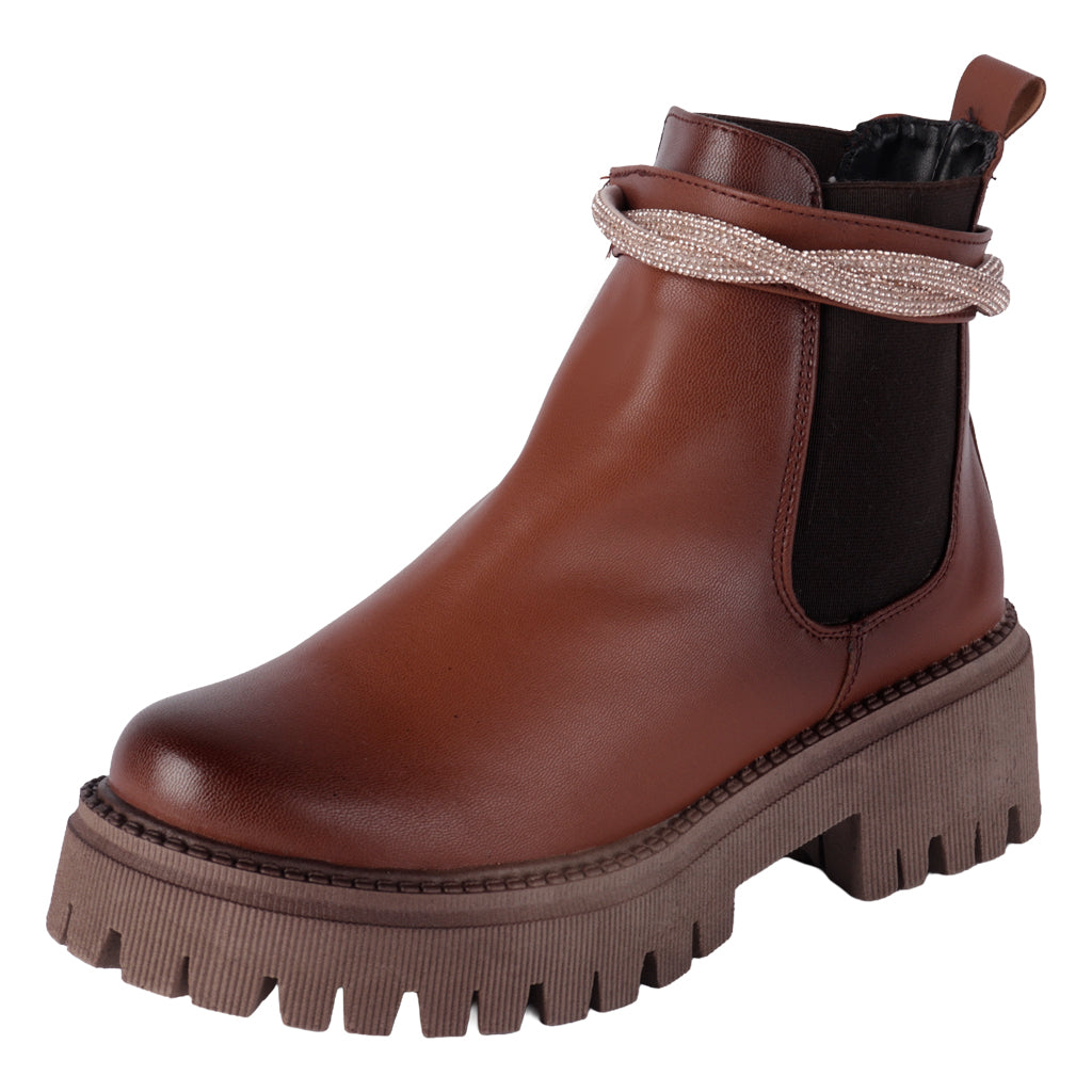 Dale un giro a tu estilo con los botines Fratello. Ideales para climas frescos, su diseño cerrado protege tus pies y aporta elegancia a cualquier look. Úsalos con pantalones rectos o vestidos tejidos. ¡Compra online y prepárate para recibir la temporada con un calzado que lo tiene todo! Fratello botines para mujer, modelo en color café, elaborado en material sintético, con elástico al tono en los laterales, con pulsera con aplicación de pedrería desmontable, tubo de 13 cm de altura, y 28 cm de circunferencia, tipo de cierre pull on, suela sintética antideslizante, con tacón ancho con un alto de 5 cm, forro textil, tallas disponibles 23/26 incluyendo medias tallas, modelo con horma normal, adquirir talla habitual. Haz que cada paso cuente con Zapatería Fratello, calzado 100% mexicano. Ponte zapatos, no límites. Compra los tuyos ahora.