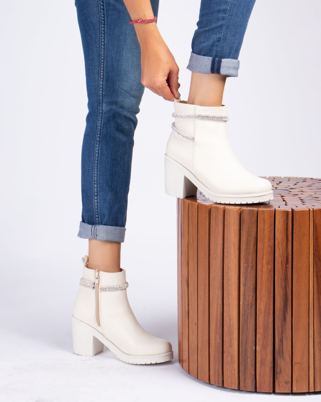 Camina con firmeza esta temporada con los botines Fratello. Diseñados para mujeres que aman el estilo y la comodidad, sus acabados de calidad y ajuste perfecto los hacen ideales para toda ocasión. Esta temporada otoño-invierno, dales a tus pies la protección y elegancia que merecen. Fratello botín casual para mujer, en color late, modelo elaborado en material sintético, tubo de 11 cm de altura, y 27 cm de circunferencia, cuenta con doble pulsera con aplicación de pedrería, tipo de cierre con cremallera al tono suela sintética ranil, cuenta con tacón de bloque, con un alto de 8 cm forro textil, tallas disponibles 23/27 incluyendo medias tallas, modelo con horma normal (talla fiel), te sugerimos adquirir talla habitual. Haz que cada paso cuente con Zapatería Fratello, calzado 100% mexicano. Ponte zapatos, no límites. Compra los tuyos ahora.