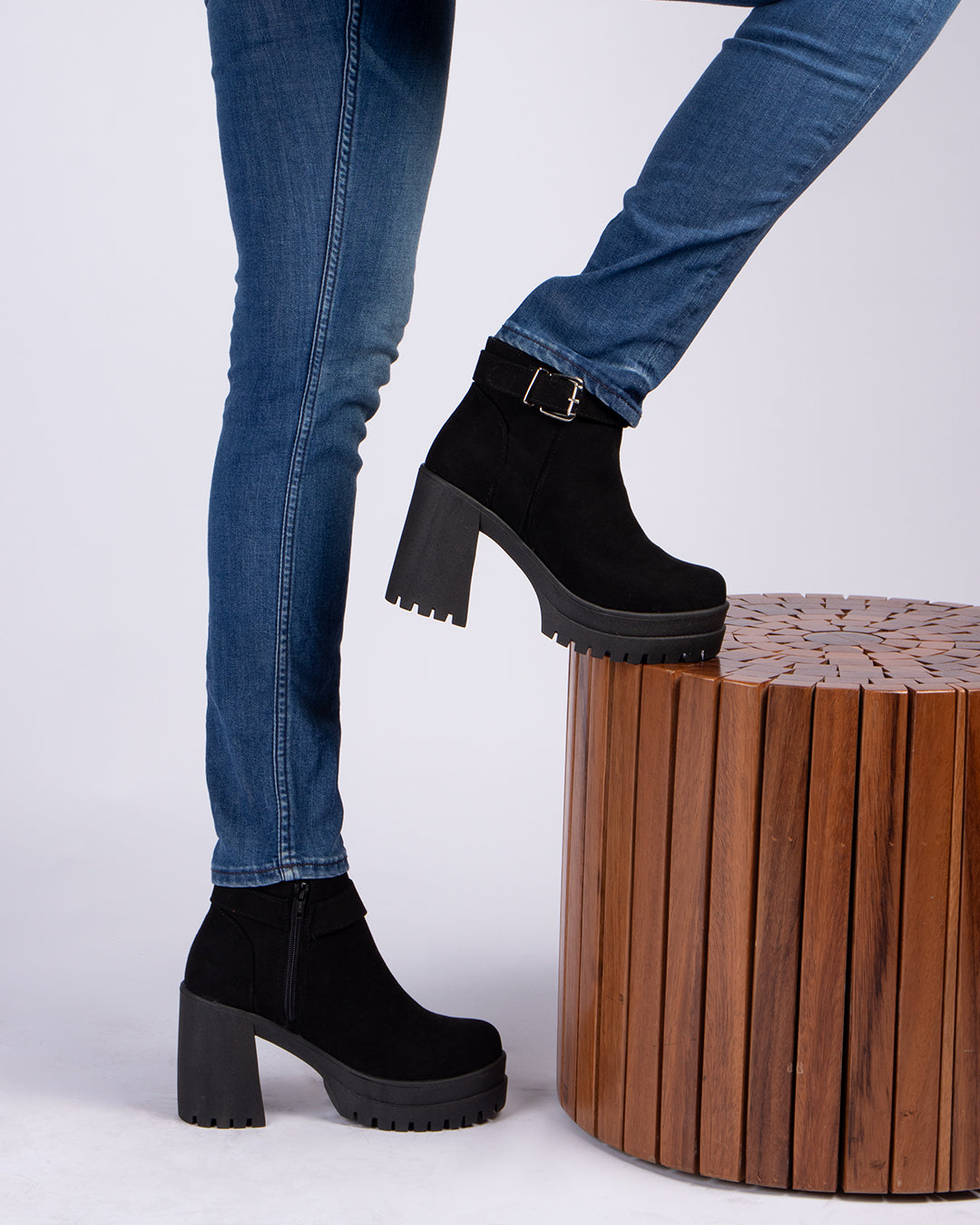 Descubre el poder de un buen par de botines. Fratello te presenta diseños que estilizan tu figura y complementan cualquier look. Confortables, cerrados y sofisticados, son ideales para la temporada fría. ¡Agrega un toque de personalidad a tus outfits y camina con seguridad todo el día! Fratello botín casual para mujer, en color negro, modelo elaborado durazno, tubo de 10 cm de altura, y 29 cm de circunferencia, cuenta con pulsera con hebilla sin función de ajuste, tipo de cierre con cremallera al tono suela sintética ranil, cuenta con tacón de bloque, con un alto de 9 cm forro sintético, tallas disponibles 22/26 incluyendo medias tallas, modelo con horma reducida, adquirir medio punto más para mayor comodidad. Haz que cada paso cuente con Zapatería Fratello, calzado 100% mexicano. Ponte zapatos, no límites. Compra los tuyos ahora.