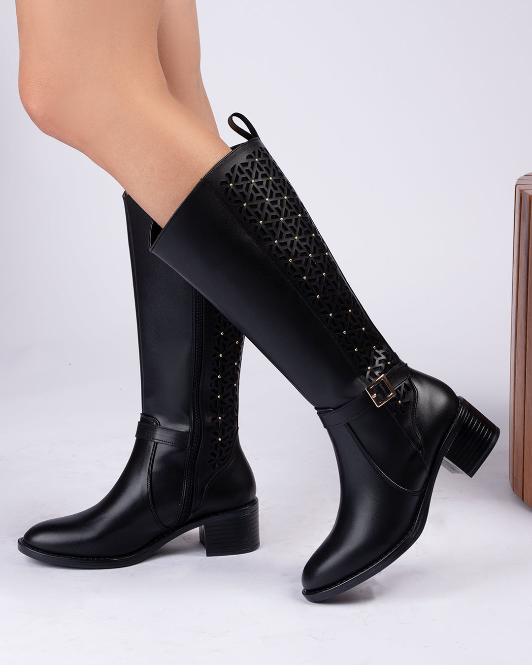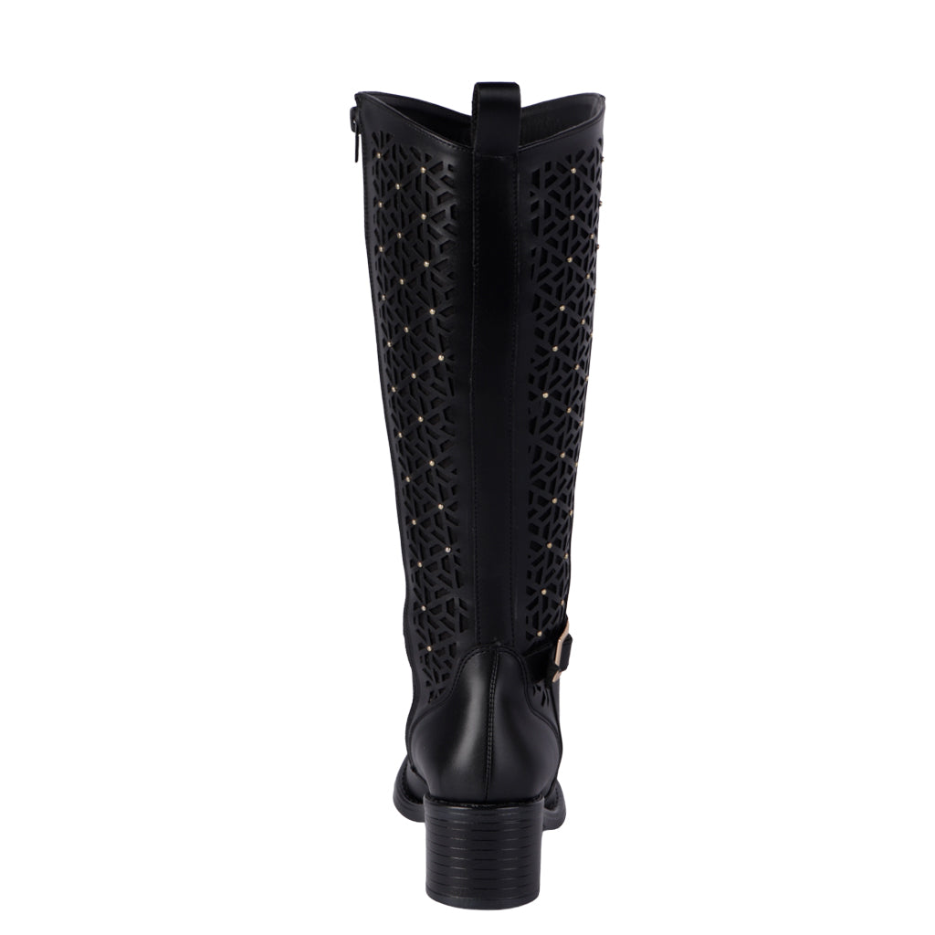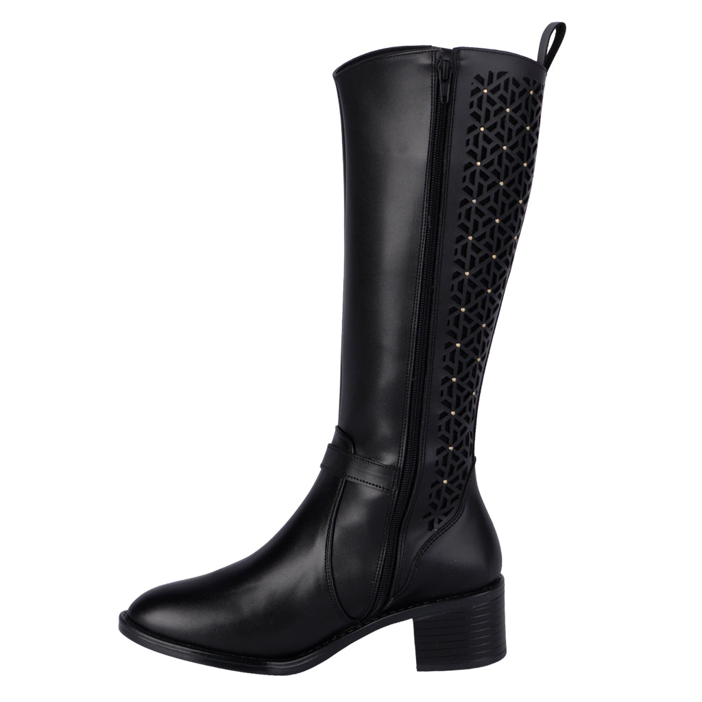 Con un diseño moderno y estilizado, las botas altas de Fratello son perfectas para crear looks sofisticados. Protegen del frío mientras añaden un toque de personalidad a tu outfit. Esta temporada, haz que cada paso cuente y conquista miradas con tu estilo. ¡Elige tus favoritas y ordénalas en línea! Fratello bota alta casual para mujer, modelo en color negro, elaborado en material sintético, tubo con aplicación de corte láser, tubo de 36 cm de altura, y 38 cm de circunferencia, tipo de cierre con cremallera en lateral interno, suela sintética antideslizante, con tacón con un alto de 4 cm, forro sintético, tallas disponibles 22/26 incluyendo medias tallas, modelo con horma reducida, adquirir medio punto más para mayor comodidad. Haz que cada paso cuente con Zapatería Fratello, calzado 100% mexicano. Ponte zapatos, no límites. Compra los tuyos ahora.