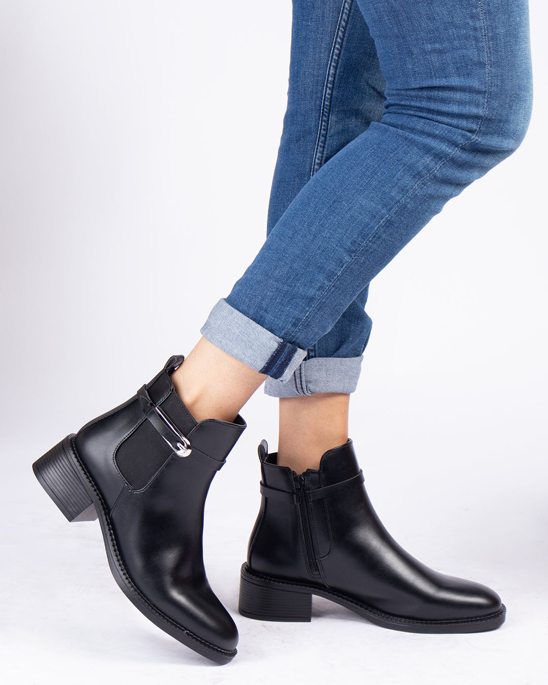 ¿Botines que van con todo? Los de Fratello, por supuesto. Su diseño atemporal te permite combinarlos con cualquier look de otoño-invierno. Son cómodos, cálidos y versátiles, justo lo que necesitas para esta temporada. ¡Luce increíble y camina segura todos los días con tu nuevo par de botines favoritos! Fratello botín casual para mujer, en color negro, modelo elaborado en material sintético, tubo de 10 cm de altura, y 26 cm de circunferencia, cuenta con pulsera con hebilla, tipo de cierre con cremallera en lateral interno, al tono suela sintética tr, cuenta con tacón de bloque, con un alto de 4 cm forro sintético, tallas disponibles 22/26 incluyendo medias tallas, modelo con horma normal (talla fiel), te sugerimos adquirir talla habitual. Haz que cada paso cuente con Zapatería Fratello, calzado 100% mexicano. Ponte zapatos, no límites. Compra los tuyos ahora.