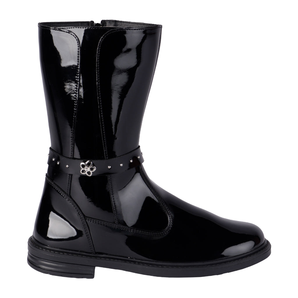 ¿Botas que combinan con todo? Fratello lo hace posible. Nuestras botas son tan versátiles como elegantes, perfectas para tu guardarropa de otoño e invierno. Con detalles que hacen la diferencia, te acompañan en todo momento. ¡Compra en línea y añade altura, estilo y calidez a tu look! Fratello bota para mujer, modelo en color negro, elaborado en material sintético charol, con herraje decorativo en color plateado, tubo de 24 cm de altura, y 32 cm de circunferencia, tipo de cierre con cremallera en lateral interno, suela sintética antideslizante, con tacón con un alto de 3 cm, forro sintético, tallas disponibles 22/25 incluyendo medias tallas, modelo con horma normal, adquirir talla habitual. Haz que cada paso cuente con Zapatería Fratello, calzado 100% mexicano. Ponte zapatos, no límites. Compra los tuyos ahora.