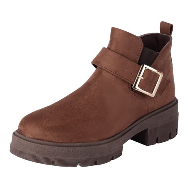 Tus looks merecen un toque especial, y los botines Fratello están listos para dártelo. Con un diseño que estiliza y protege, son perfectos para esta temporada. Combínalos con tonos neutros, tejidos gruesos o capas largas. ¡Luce increíble sin esfuerzo y compra online tu nuevo par favorito! Fratello botines para mujer, modelo en color café, elaborado en material sintético acabado suave al tacto, con elástico al tono en los laterales, con hebilla color oro sin función de ajuste, tubo de 9 cm de altura, y 28 cm de circunferencia, tipo de cierre pull on, suela sintética antideslizante, con tacón ancho con un alto de 5 cm, forro textil, tallas disponibles 23/26 incluyendo medias tallas, modelo con horma normal, adquirir talla habitual. Haz que cada paso cuente con Zapatería Fratello, calzado 100% mexicano. Ponte zapatos, no límites. Compra los tuyos ahora.