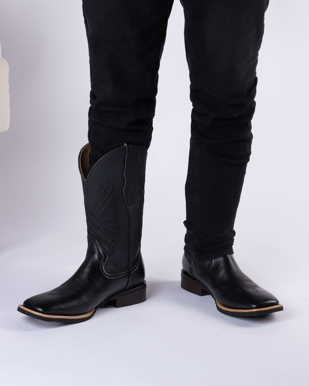 Desde el campo hasta la ciudad. Estas botas vaqueras Fratello se adaptan a cualquier entorno con fuerza y autenticidad. Su diseño elaborado y suela resistente garantizan presencia en cada paso. ¡Hazlas parte de tu día a día! Fratello bota vaquera para hombre, en color negro, modelo elaborado en piel, tubo de 30 cm de altura, y 40 cm de circunferencia, cuenta con bordado al tono, tipo de cierre pull on, suela sintética de hule, tacón ancho, con un alto de 4 cm forro de piel, tallas disponibles 22/25 incluyendo medias tallas, modelo con horma normal (talla fiel), te sugerimos adquirir talla habitual. Haz que cada paso cuente con Zapatería Fratello, calzado 100% mexicano. Ponte zapatos, no límites. Compra los tuyos ahora.