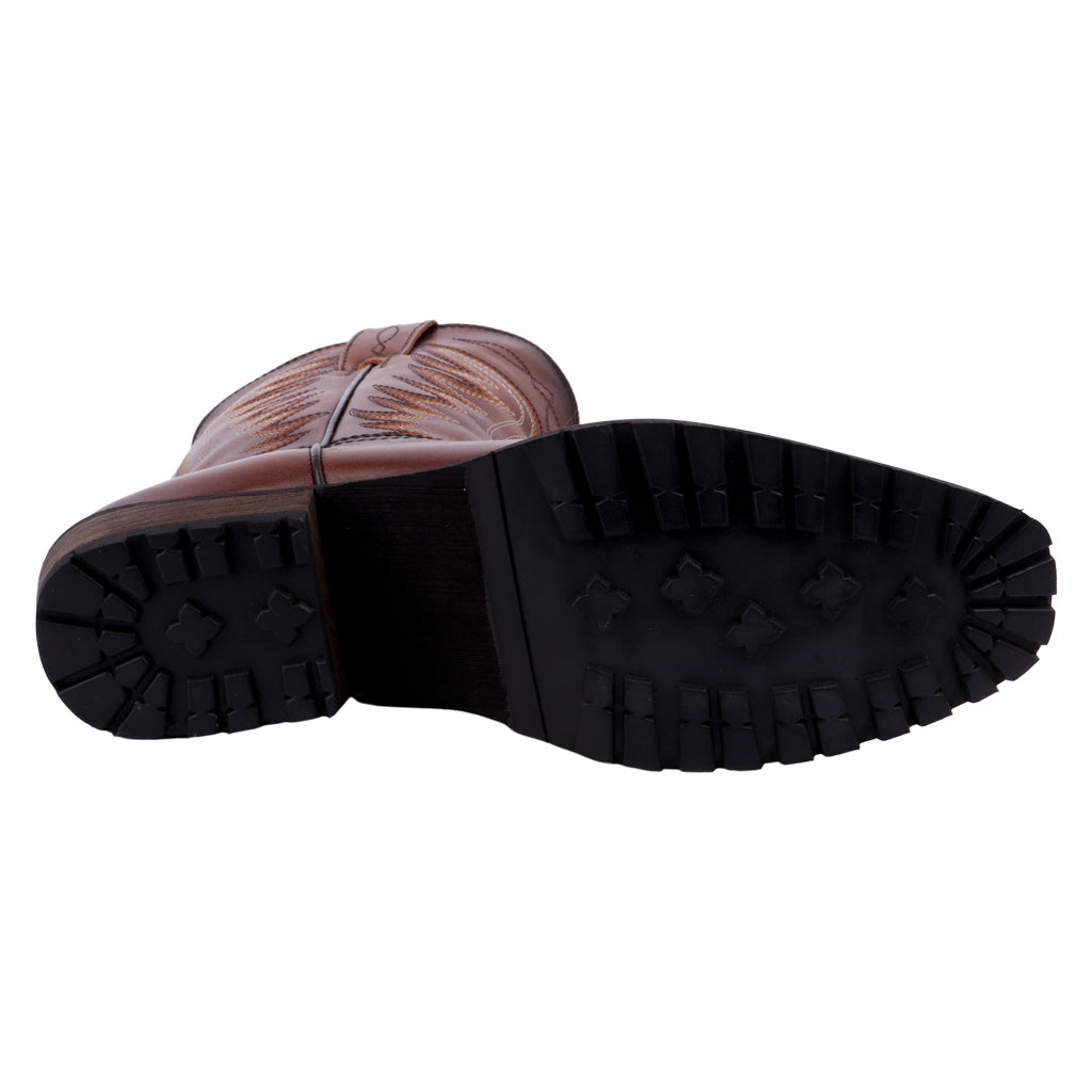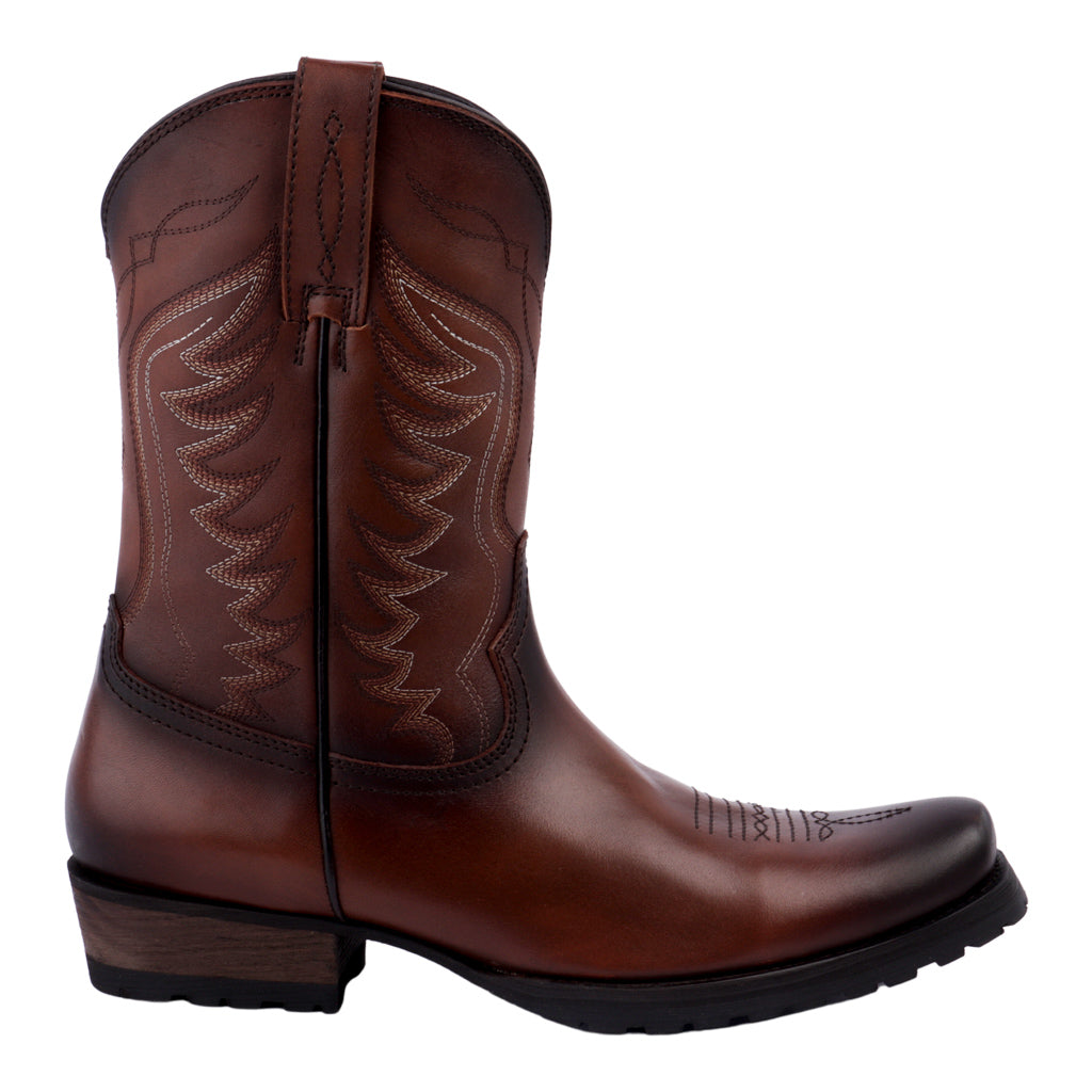 Si quieres añadir un toque de estilo a tu guardarropa, las botas vaqueras son una excelente opción. Con su diseño distintivo y su calidad, estas botas son una declaración de moda por derecho propio. Bota vaquera para hombre, modelo en color café, elaborado en piel, tubo con 27 cm de altura y 37 cm de circunferencia, suela de cuero, tacón con 4 cm de altura, ajuste slip on, forro de piel, tallas disponibles del 25 al 29, modelo con horma normal, adquirir talla habitual. Calza con estilo con Zapatería Fratello, calzado mexicano a la vanguardia, calidad y precio.
