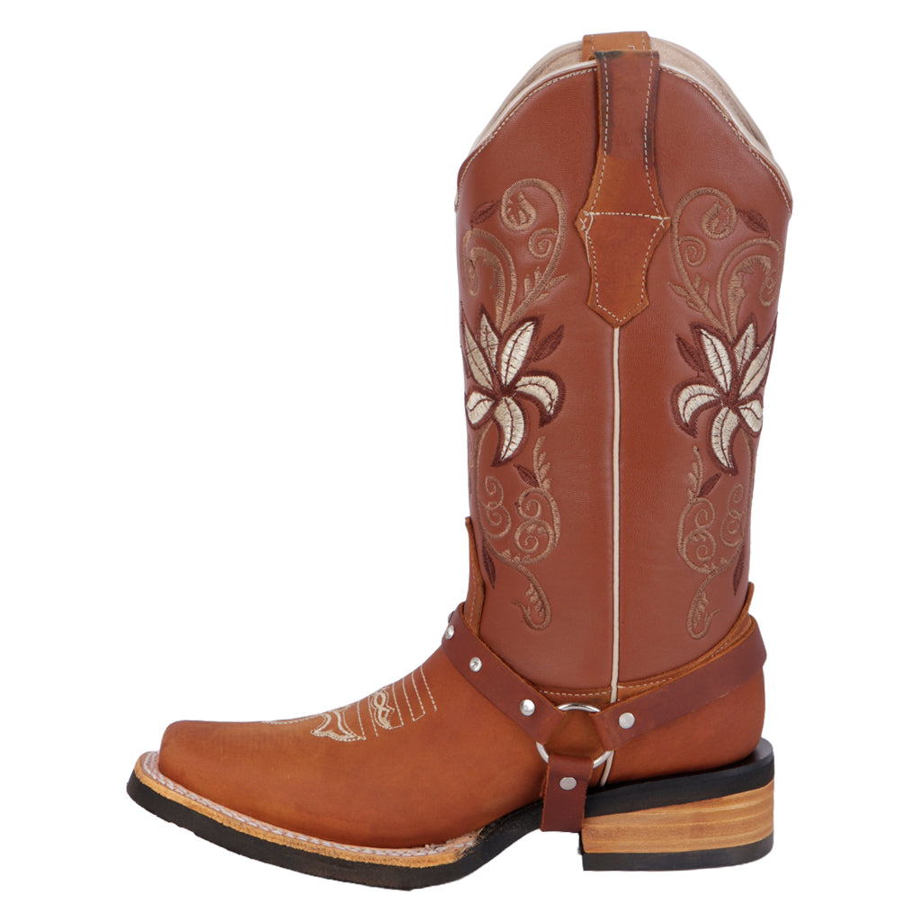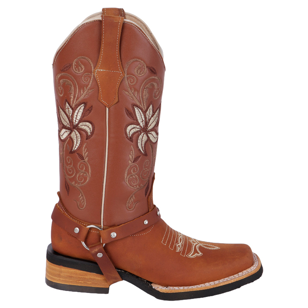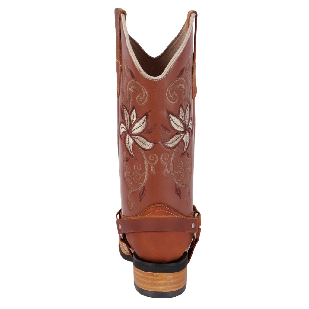 Estilo que nunca pasa de moda. Las botas vaqueras Fratello están diseñadas para mujeres con actitud, ideales para outfits casuales o de inspiración country. Sus detalles bordados y materiales resistentes las hacen perfectas para esta temporada. ¡Haz clic y pisa con fuerza, carácter y estilo auténtico! Fratello botas vaqueras para mujer 1012, modelo en color miel, modelo elaborado en piel, tubo de 30 cm de altura y 37 cm de circunferencia, cuenta con diseño bordado y arnés, tipo de cierre pull on, suela de cuero, cuenta con tacón ancho, con un alto de 4 cm, forro de piel, tallas disponibles de 22/26 incluyendo medias tallas, modelo con horma normal (talla fiel), te sugerimos adquirir talla habitual.