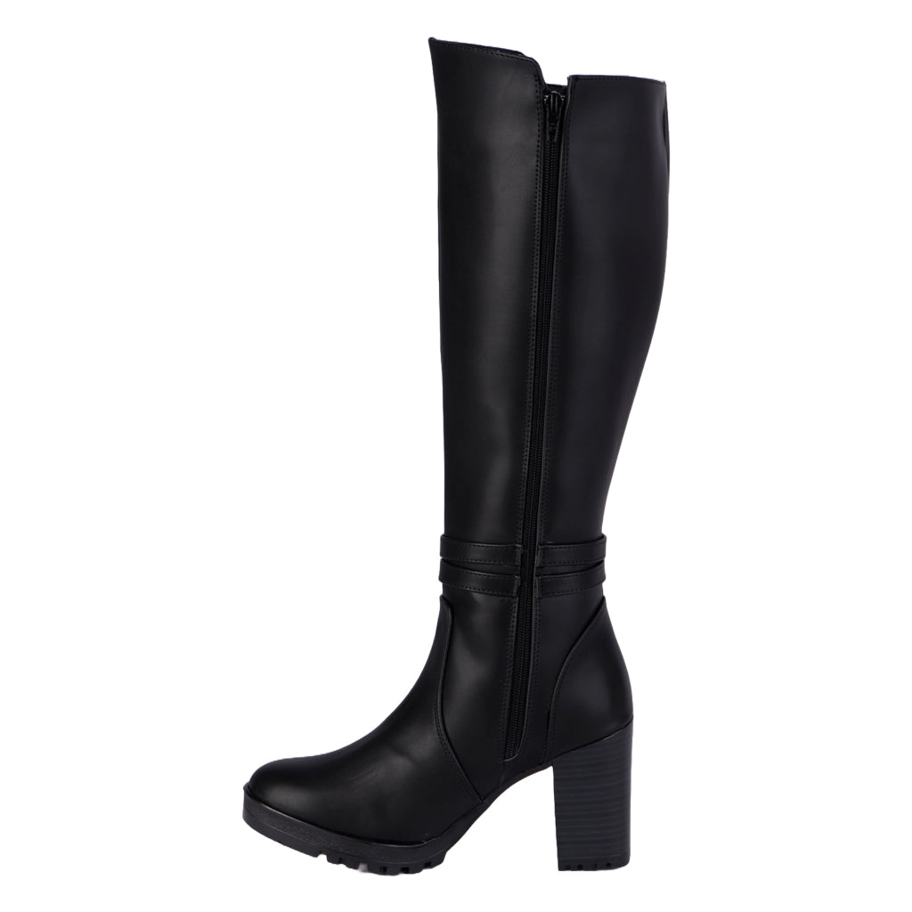 Conquista el otoño-invierno con las botas altas de Fratello. Su diseño favorecedor y sofisticado las convierte en la opción ideal para realzar cualquier look. Camina con calidez y confianza, sin sacrificar estilo. Añádelas a tu guardarropa y descubre cómo transformar tu outfit desde los pies. ¡Hazlas tuyas hoy mismo! Fratello bota alta casual para mujer, en color negro, modelo elaborado en material sintético, tubo de 38 cm de altura, y 40 cm de circunferencia, cuenta con pulseras con hebilla, tipo de cierre con cremallera al tono suela sintética ranil, cuenta con tacón de bloque, con un alto de 9 cm forro sintético, tallas disponibles 22/26 incluyendo medias tallas, modelo con horma reducida, te sugerimos adquirir media talla más a la habitual. Haz que cada paso cuente con Zapatería Fratello, calzado 100% mexicano. Ponte zapatos, no límites. Compra los tuyos ahora.