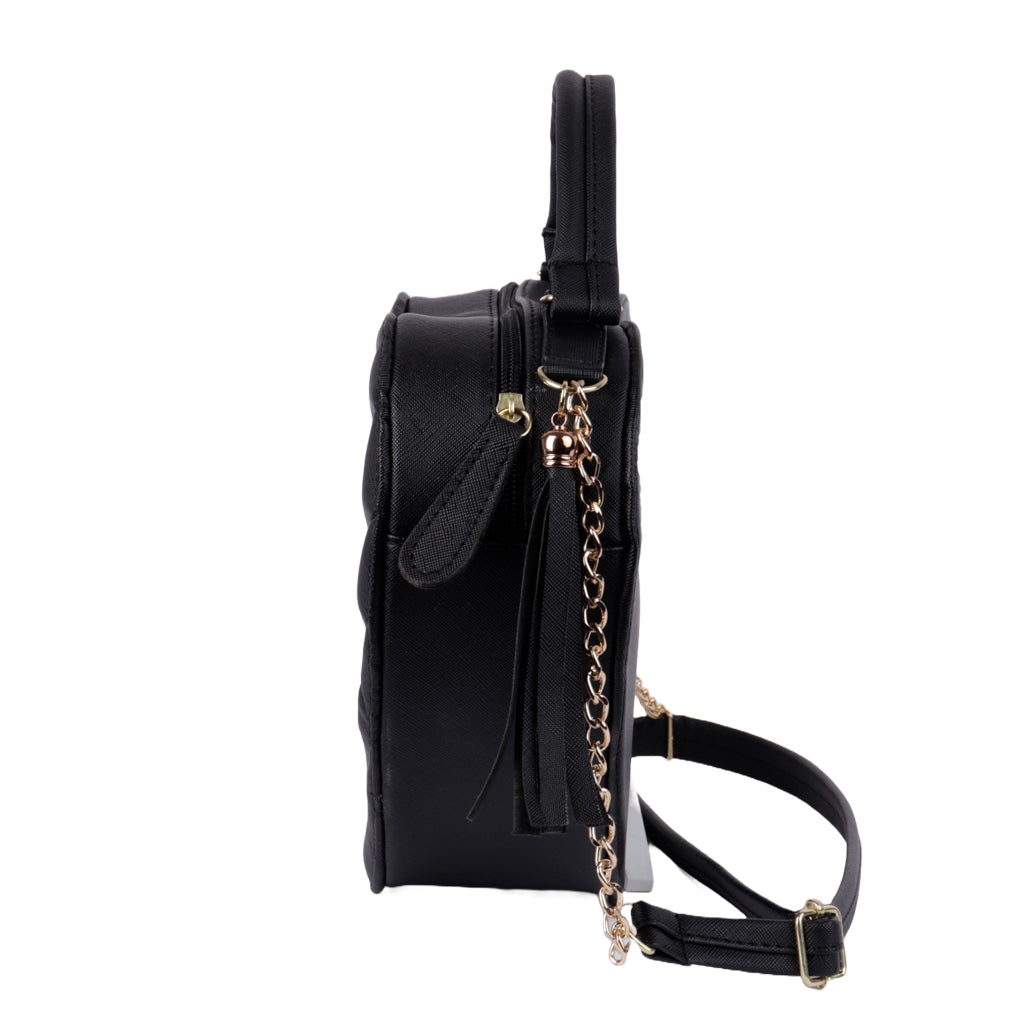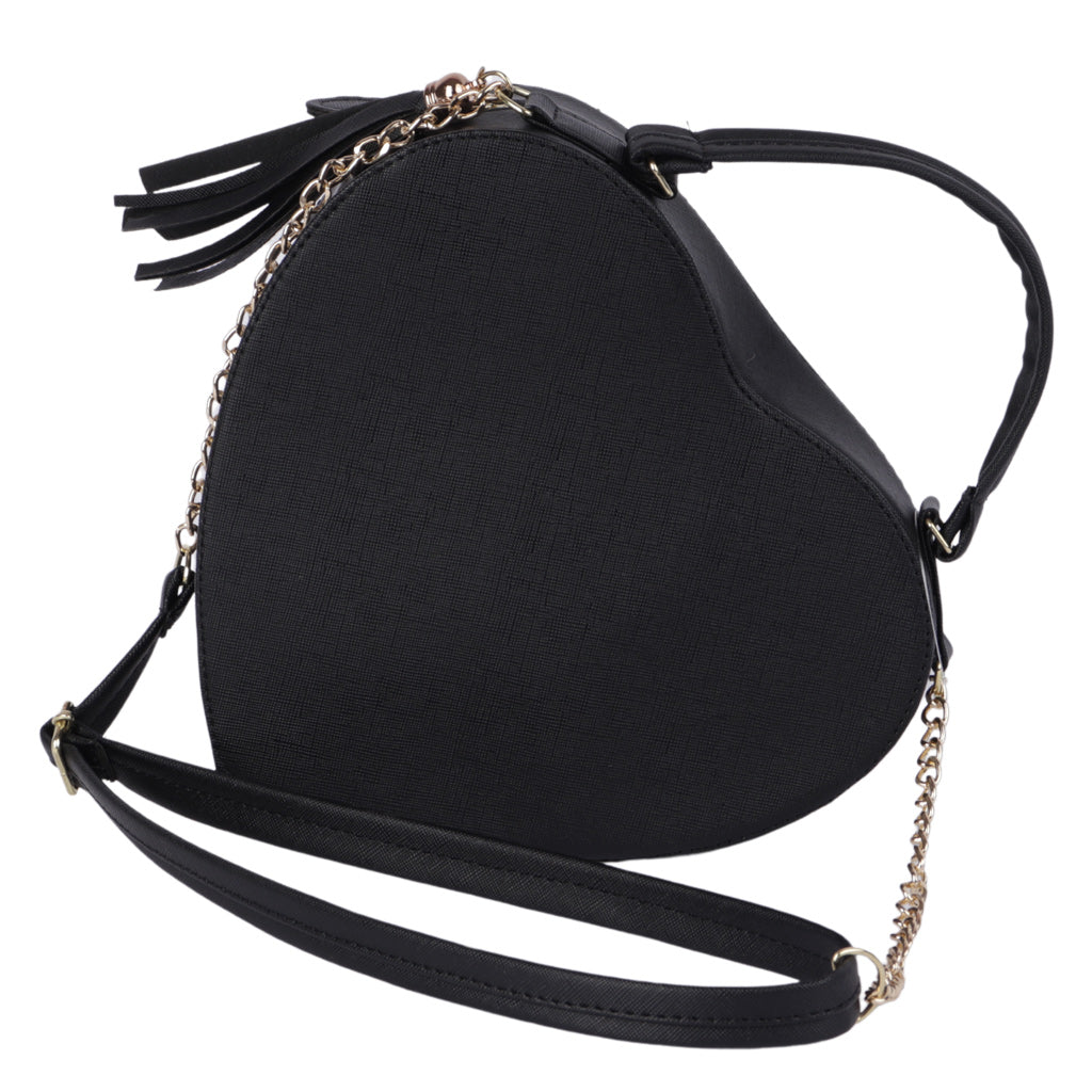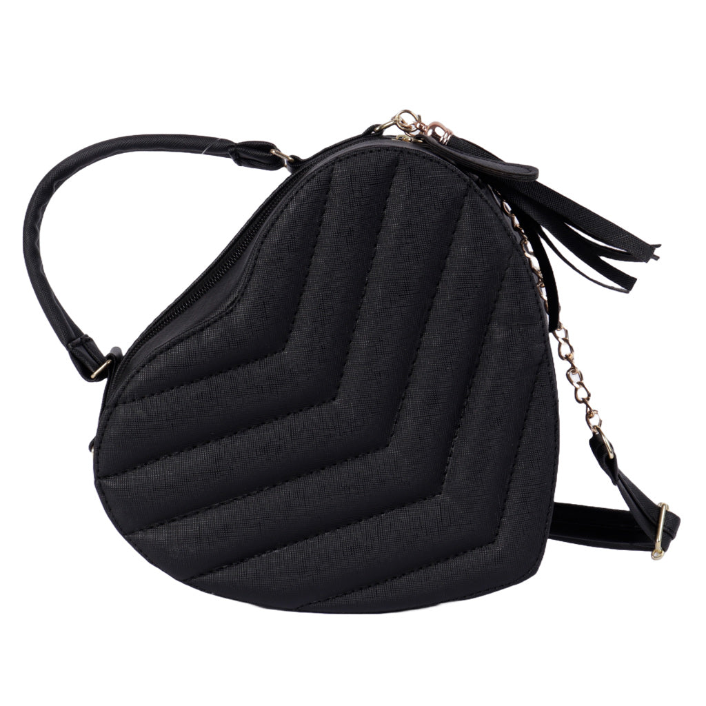Dale un toque especial a tu outfit con un bolso de moda. Descubre los estilos más trendy en nuestra tienda online y compra ahora. ¡Agrega tu favorito al carrito y luce increíble!Fratello bolsa color negro para mujer, diseño moderno en forma de corazón elaborado en material sintético, estilo acolchado, con borla al tono, cuenta compartimento amplio interno con cremallera al tono y herraje color oro, tipo de cierre con cremallera, cómodo tirante ajustable no desmontable, asa superior de transporte, forro textil, diseñada con una medida de 20 cm de alto x 23 cm de ancho y 8 cm de profundidad, con capacidad de 3.68 litros. Complementa tu estilo con accesorios de Zapatería Fratello, destacando la calidad y precio de la vanguardia mexicana.