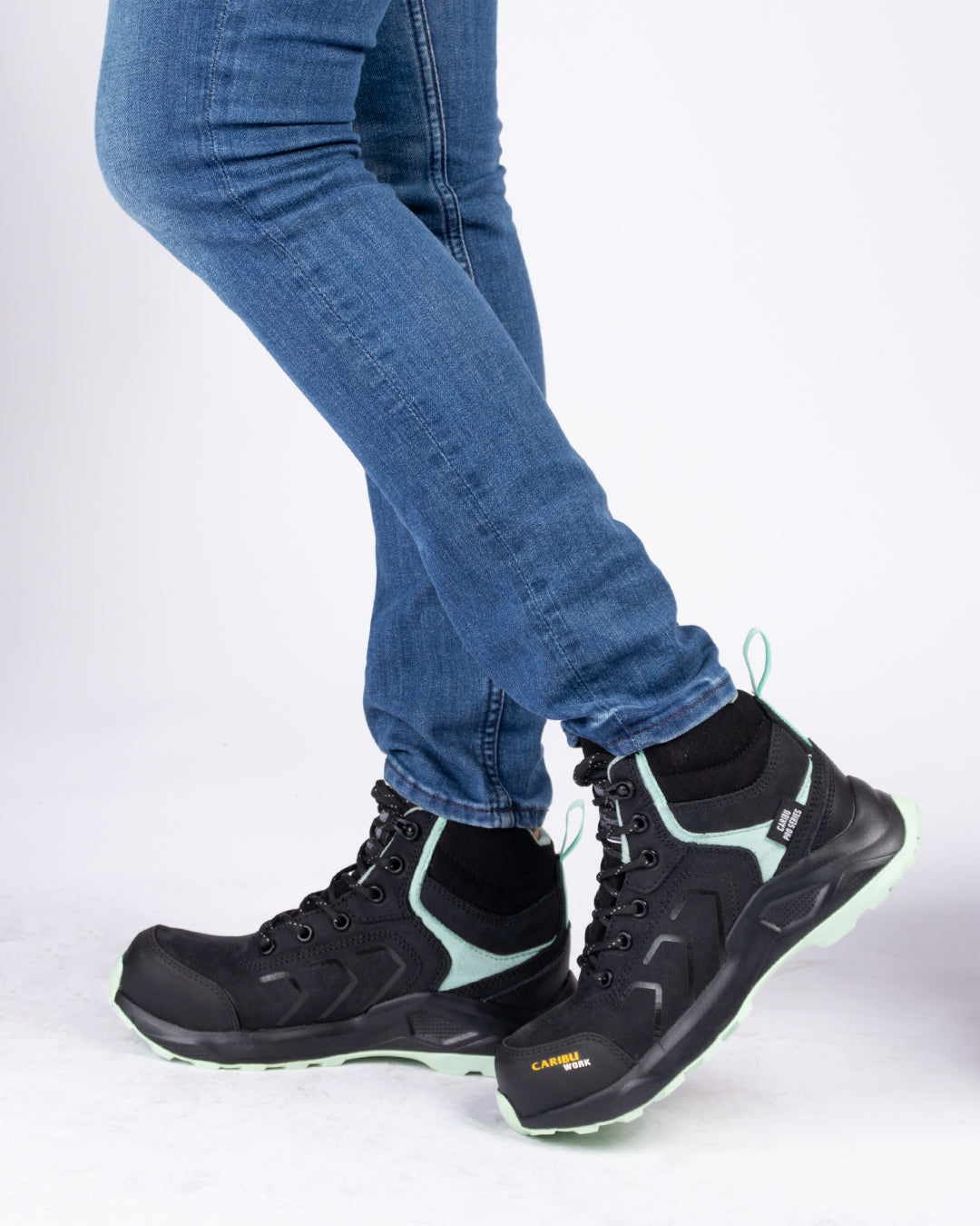 Fratello entiende lo que necesitas: botas industriales duraderas, resistentes y cómodas. Pensadas para mujeres que trabajan duro y requieren protección en cada paso. Con refuerzo en punta, suela antiderrapante y plantilla acolchada, estas botas te brindan seguridad todo el día. ¡Haz tu pedido hoy y trabaja con fuerza! Caribu botas industriales para mujer, modelo en color negro en combinación con menta, elaborado en material piel nobuck, cuenta con buyón acolchado, con casco de protección de poliamida, tubo de 10 cm de altura, y 31 cm de circunferencia, tipo de cierre con agujetas al tono, suela sintética TPU antideslizante, suela con un alto de 4 cm, forro textil, tallas disponibles 22/26 incluyendo medias tallas, modelo con horma normal, adquirir talla habitual. Haz que cada paso cuente con Zapatería Fratello, calzado 100% mexicano. Ponte zapatos, no límites. Compra los tuyos ahora.