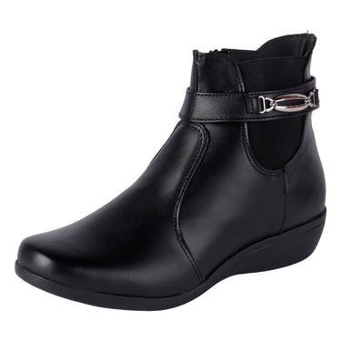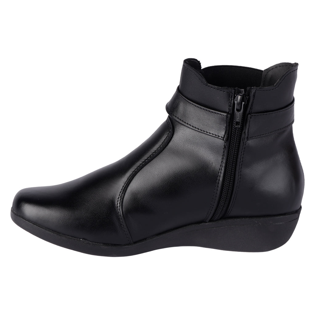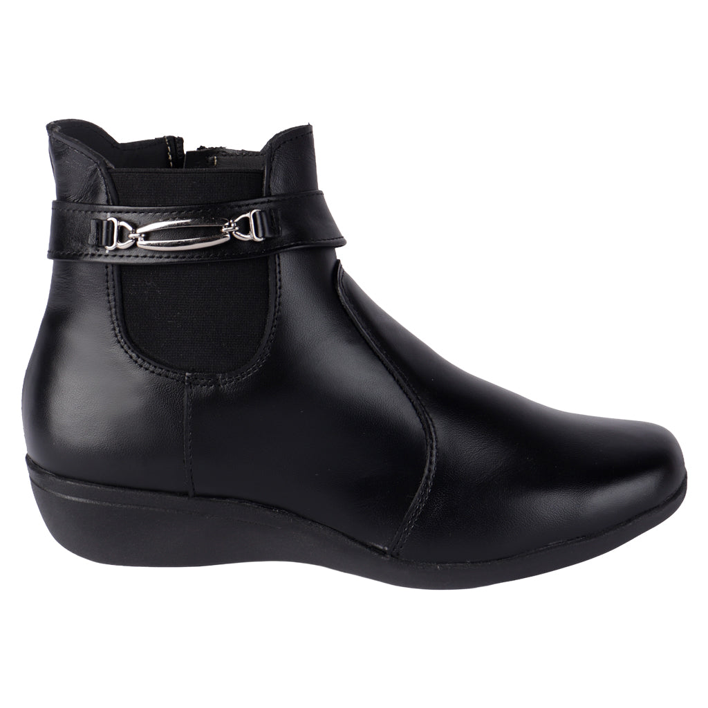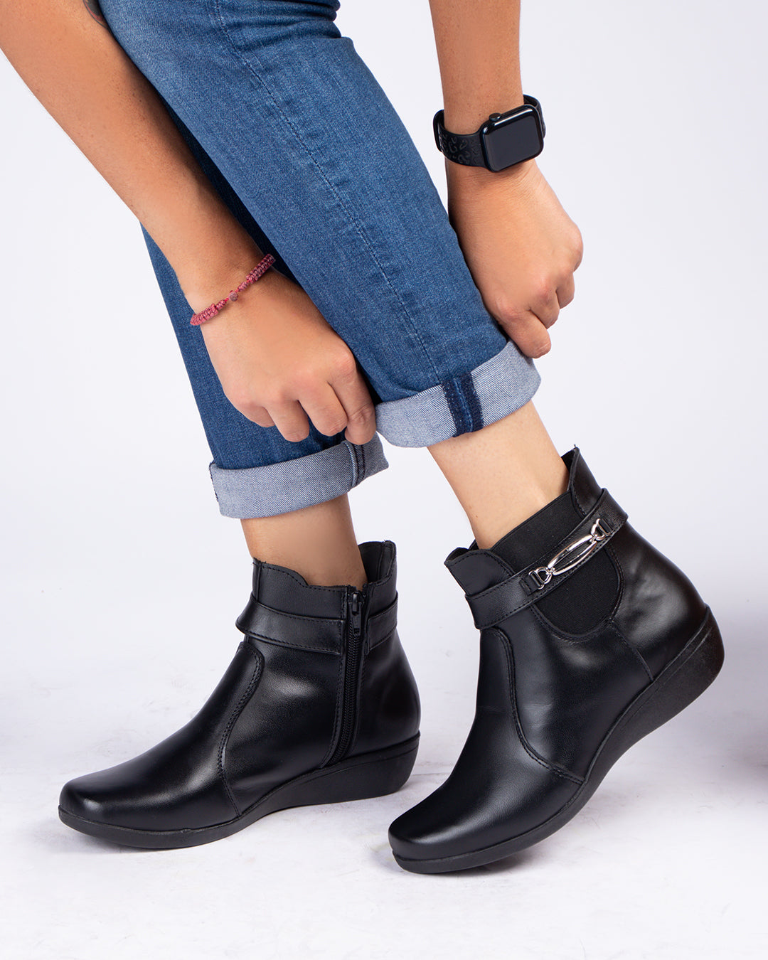 Luce impecable con los botines Fratello. Su diseño moderno y su calce perfecto se adaptan a ti y a tu ritmo de vida. Esta temporada, camina con estilo sin dejar de lado la funcionalidad. Botines cómodos, versátiles y llenos de personalidad. ¡Haz clic y hazlos parte de tu look! Fratello botines para mujer, modelo en color negro, elaborado en material piel, tubo de 13 cm de altura, y 30 cm de circunferencia, cuenta con elástico al tono en lateral externo, con aplicación de herraje color plata, tipo de cierre con cremallera en lateral interno, suela sintética antideslizante, suela con un alto de 3 cm, forro textil, tallas disponibles 22/26 incluyendo medias tallas, modelo con horma normal, adquirir talla habitual. Haz que cada paso cuente con Zapatería Fratello, calzado 100% mexicano. Ponte zapatos, no límites. Compra los tuyos ahora.