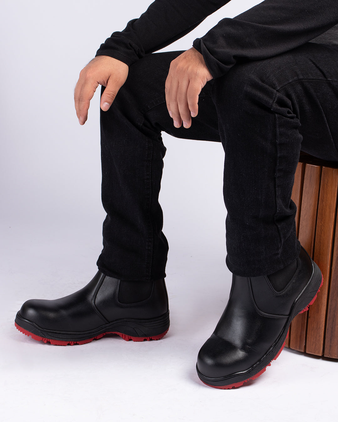 Diseño técnico, materiales resistentes y protección garantizada. Estas botas industriales Fratello ofrecen la seguridad que necesitas para trabajar sin distracciones. Ideales para entornos de alto riesgo. ¡Agrégalas a tu equipo y trabaja con firmeza! Fratello botas industriales para hombre, modelo en color negro, elaborado en piel, tubo de 12 cm de altura, y 30 cm de circunferencia, tipo de ajuste pull on, con elástico en los laterales, cuenta con casquillo de protección de poliamida, suela sintética con un alto de 4 cm, suela sintética, forro textil, tallas disponibles 25/29 incluyendo medias tallas, modelo con horma normal (talla fiel), te sugerimos adquirir talla habitual. Haz que cada paso cuente con Zapatería Fratello, calzado 100% mexicano. Ponte zapatos, no límites. Compra los tuyos ahora.