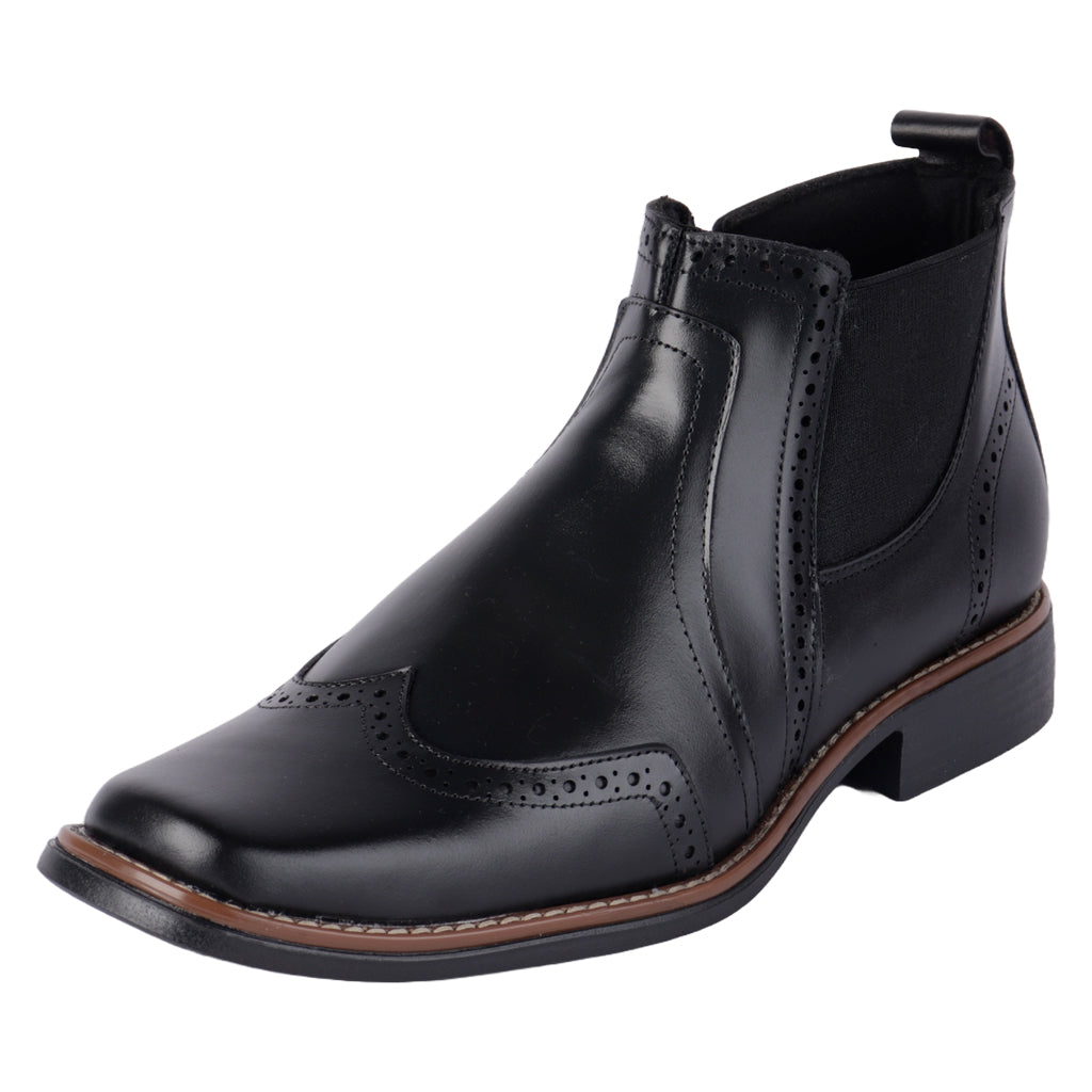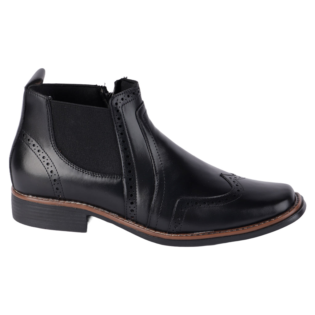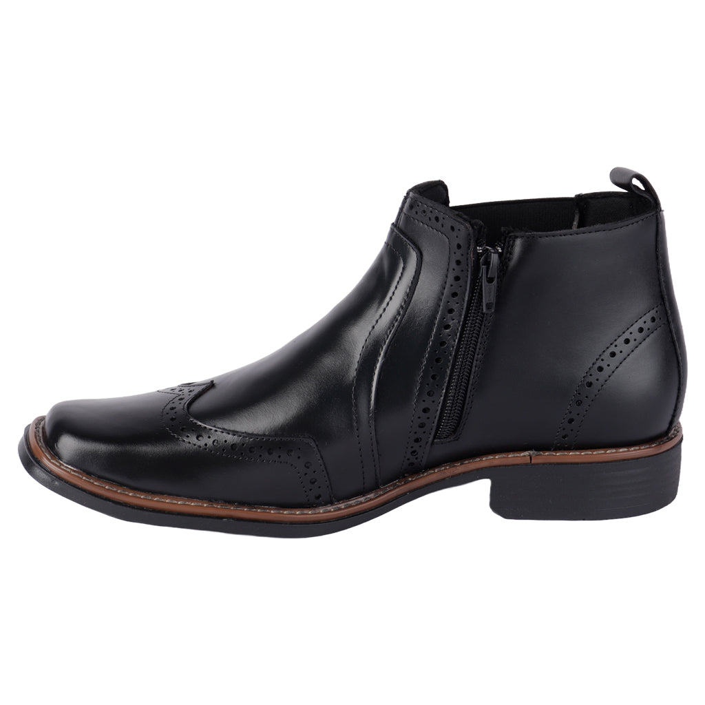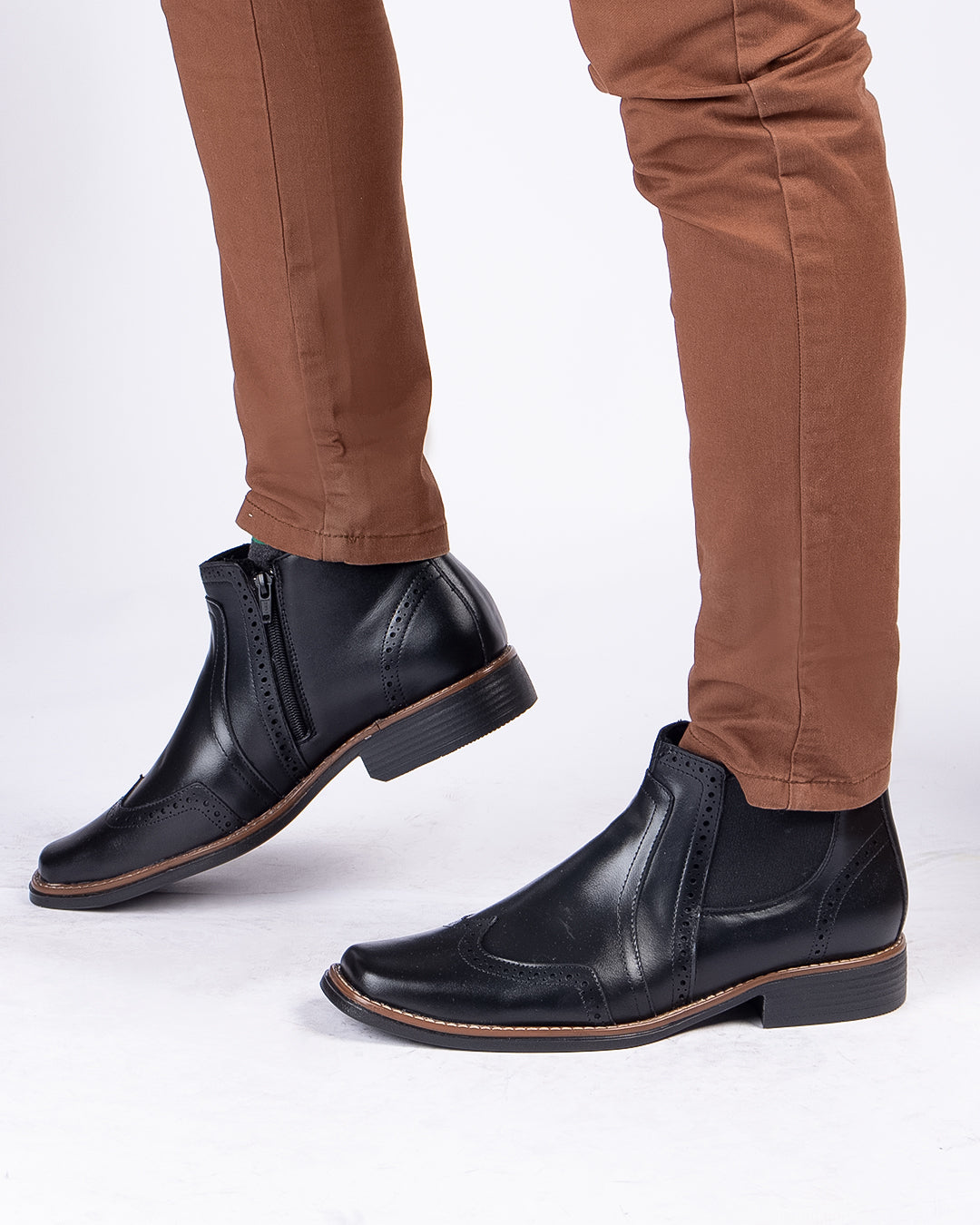 Estilo casual, estructura firme. Los botines de caballero Fratello te acompañan en tus planes diarios con una silueta elegante y duradera. Versátiles y funcionales, van con todo. ¡Agrégalos a tu guardarropa! Fratello botín bostoniano para hombre, en color negro, modelo elaborado en piel, tubo de 10 cm de altura, y 30 cm de circunferencia, cuenta con elástico, tipo de cierre con cremallera al tono suela sintética de cuero, tacón ancho, con un alto de 3 cm forro textil, tallas disponibles 25/29 incluyendo medias tallas, modelo con horma normal (talla fiel), te sugerimos adquirir talla habitual. Haz que cada paso cuente con Zapatería Fratello, calzado 100% mexicano. Ponte zapatos, no límites. Compra los tuyos ahora.