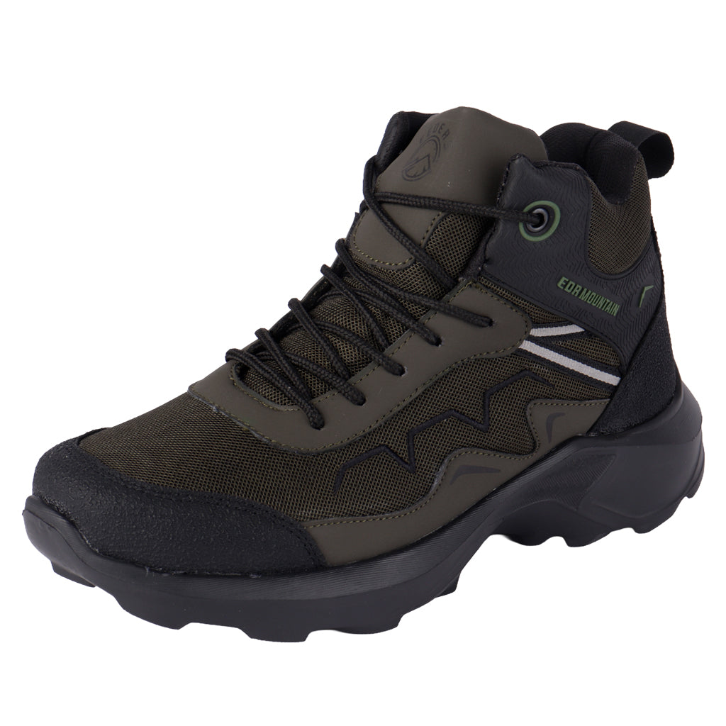 Terreno difícil, solución firme. Estas botas de senderismo Fratello están hechas para protegerte en caminos rocosos, húmedos o inestables. Con materiales resistentes y diseño ergonómico, avanzas sin limitaciones. ¡Hazlas tuyas y conquista cualquier ruta! Fratello bota de senderismo para hombre, en color negro/militar, modelo elaborado en textil, cuenta con tipo de cierre con cordones en tono bicolor café y beige, suela sintética de phylon, antideslizante, cuenta con suela plana, con un alto de 4 cm forro textil, tallas disponibles 25/29 incluyendo medias tallas, modelo con horma normal (talla fiel), te sugerimos adquirir talla habitual. Haz que cada paso cuente con Zapatería Fratello, calzado 100% mexicano. Ponte zapatos, no límites. Compra los tuyos ahora.