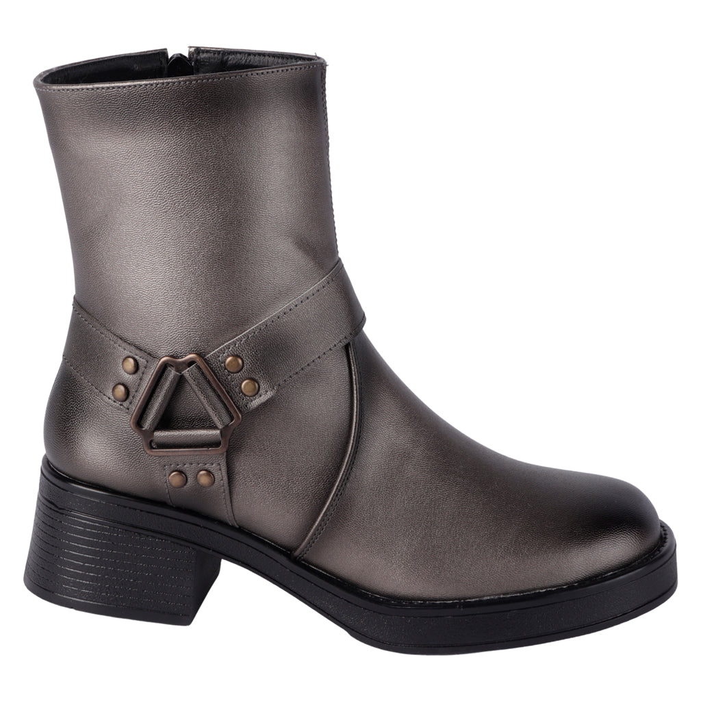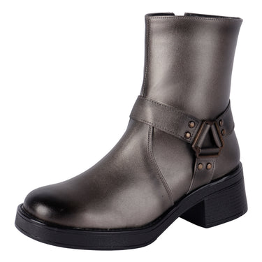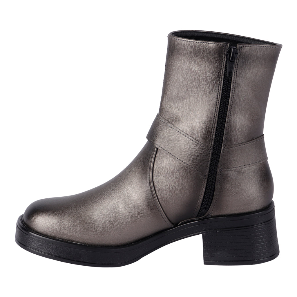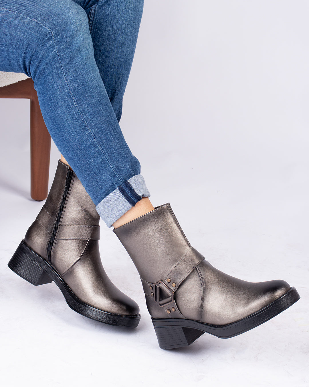 Dale un giro a tu estilo con los botines Fratello. Ideales para climas frescos, su diseño cerrado protege tus pies y aporta elegancia a cualquier look. Úsalos con pantalones rectos o vestidos tejidos. ¡Compra online y prepárate para recibir la temporada con un calzado que lo tiene todo! Fratello botín para mujer, en color inox, modelo elaborado en material sintético, tubo de 16 cm de altura, y 27 cm de circunferencia, cuenta con herraje decorativo, tipo de cierre con cremallera en lateral interno, en tono negro, suela sintética tr, cuenta con tacón de bloque, con un alto de 5 cm forro sintético, tallas disponibles 22/26 incluyendo medias tallas, modelo con horma normal (talla fiel), te sugerimos adquirir talla habitual. Haz que cada paso cuente con Zapatería Fratello, calzado 100% mexicano. Ponte zapatos, no límites. Compra los tuyos ahora.