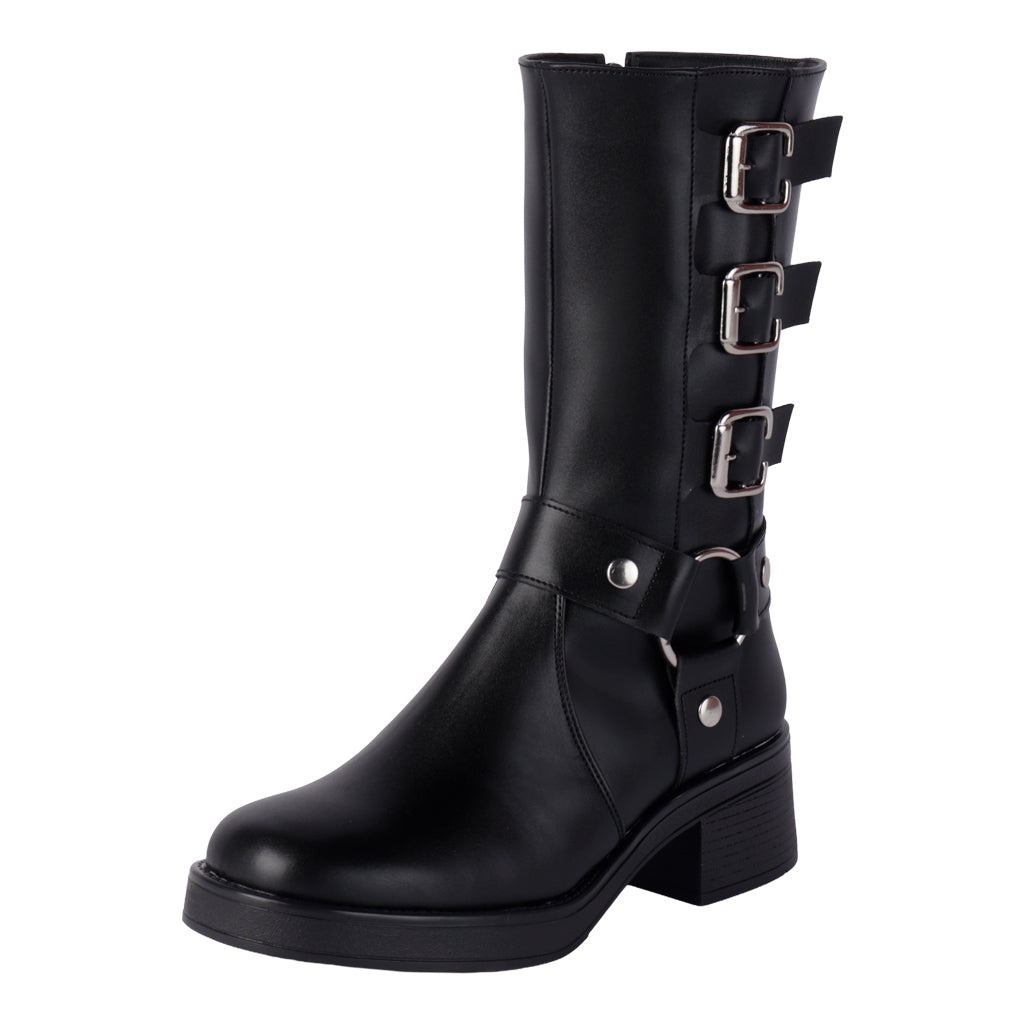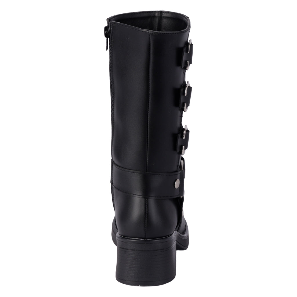 Este otoño-invierno, conquista las calles con las botas combat de Fratello. Su diseño elegante y moderno te ofrece soporte, abrigo y estilo en un solo calzado. Fáciles de combinar y perfectas para climas frescos. ¡Luce impecable y camina con seguridad en cualquier ocasión! Fratello bota combat para mujer, en color negro, modelo elaborado en material sintético, tubo de 23 cm de altura, y 32 cm de circunferencia, cuenta con hebilla sin función de ajuste, tipo de cierre con cremallera en lateral interno, al tono suela sintética tr, cuenta con tacón de bloque, con un alto de 5 cm forro sintético, tallas disponibles 22/26 incluyendo medias tallas, modelo con horma normal (talla fiel), te sugerimos adquirir talla habitual. Haz que cada paso cuente con Zapatería Fratello, calzado 100% mexicano. Ponte zapatos, no límites. Compra los tuyos ahora.