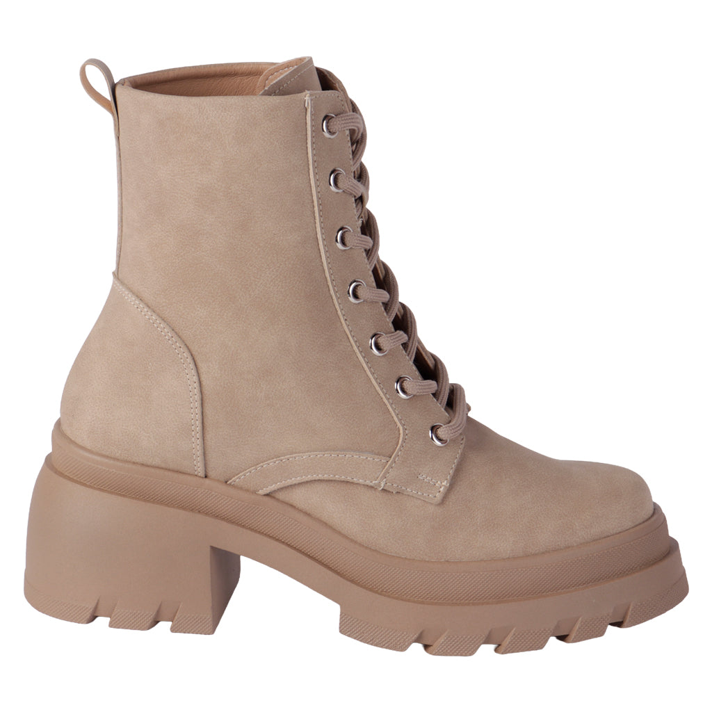 Estas botas casuales están pensadas para ti. Fratello combina estilo urbano con practicidad, creando modelos cómodos, modernos y resistentes al clima frío. Camina segura, mantente abrigada y luce increíble sin esfuerzo. ¡Agrégalas a tu carrito hoy mismo y disfruta cada paso! Green Love botas casuales para mujer, estilo combat, modelo en color arena, elaborado en material sintético, tubo de 15 cm de altura, y 29 cm de circunferencia, tipo de cierre con agujetas al tono, suela sintética antideslizante, tacón ancho con un alto de 7 cm, forro textil, tallas disponibles 22/26 incluyendo medias tallas, modelo con horma normal, adquirir talla habitual. Haz que cada paso cuente con Zapatería Fratello, calzado 100% mexicano. Ponte zapatos, no límites. Compra los tuyos ahora.