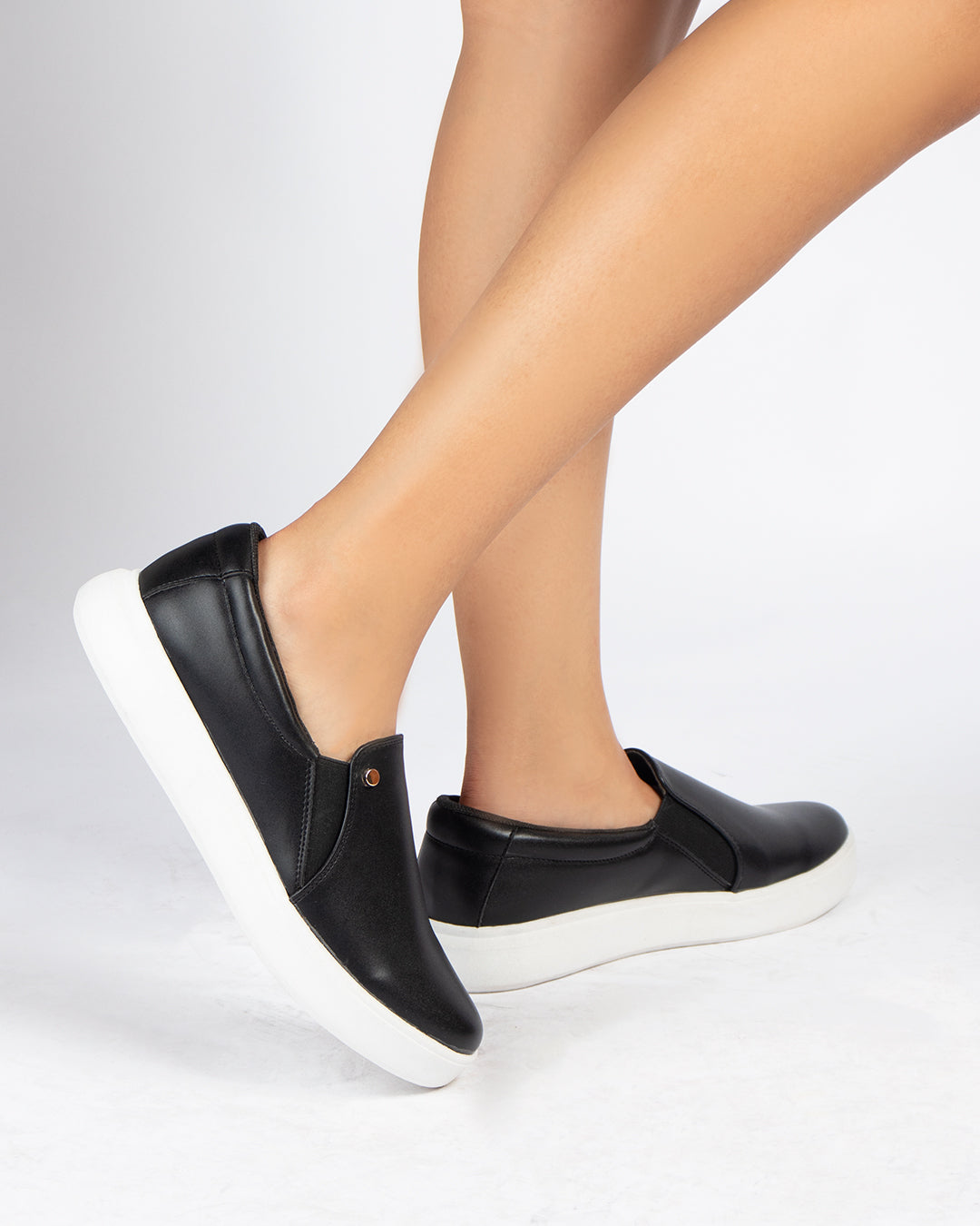Los tenis casuales Fratello están hechos para mujeres que marcan tendencia. Fáciles de usar, con estilo sobrio y actual, se convierten en tus favoritos desde el primer paso. ¡Haz clic y dale a tu look un upgrade instantáneo! Fratello tenis casuales para mujer, modelo en color negro, elaborado en material sintético, tipo de ajuste pull on, suela sintética antideslizante con un alto de 3 cm, forro textil, tallas disponibles 22/26 incluyendo medias tallas, modelo con horma normal, adquirir talla habitual. Haz que cada paso cuente con Zapatería Fratello, calzado 100% mexicano. Ponte zapatos, no límites. Compra los tuyos ahora.