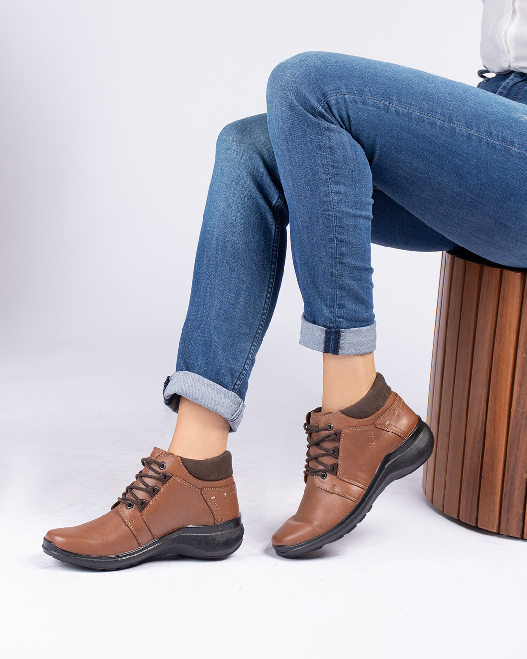 Los botines Fratello están hechos para mujeres que marcan tendencia. Esta temporada, elige modelos con personalidad, diseñados para combinar con todo. Su diseño cerrado te protege del frío, mientras su silueta estiliza tus pasos. ¡Haz tu compra online y recibe elegancia directa en tu puerta! Verde Tabaco botines para mujer, modelo en color café claro, elaborado en material piel, tubo de 8 cm de altura, y 31 cm de circunferencia, tipo de cierre con agujetas, cuenta con buyón acolchado, suela sintética antideslizante, suela con un alto de 4 cm, forro textil, tallas disponibles 22/26 incluyendo medias tallas, modelo con horma normal, adquirir talla habitual. Haz que cada paso cuente con Zapatería Fratello, calzado 100% mexicano. Ponte zapatos, no límites. Compra los tuyos ahora.