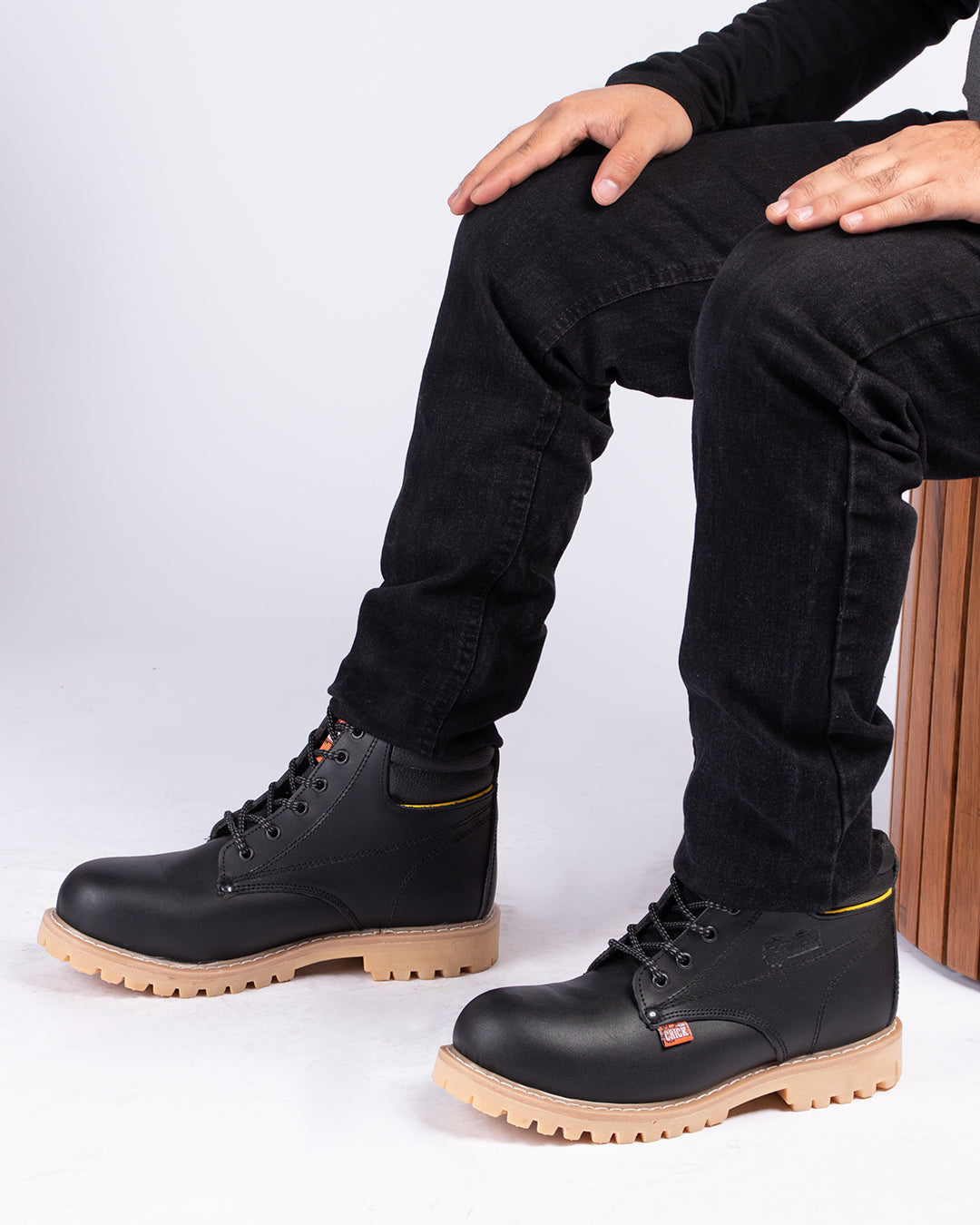 Las botas industriales Fratello ofrecen lo que necesitas: protección real y resistencia prolongada. Su diseño robusto y suela de alta adherencia te permiten moverte con seguridad. Perfectas para todo tipo de industria. ¡Agrégalas al carrito y trabaja sin límites! Fratello botas industriales para hombre, modelo en color negro, elaborado en piel, tubo de 13 cm de altura, y 36 cm de circunferencia, tipo de ajuste con agujetas al tono, cuenta con casquillo de protección de acero, suela sintética con un alto de 3 cm, suela sintética, forro textil, tallas disponibles 25/29 incluyendo medias tallas, modelo con horma normal (talla fiel), te sugerimos adquirir talla habitual. Haz que cada paso cuente con Zapatería Fratello, calzado 100% mexicano. Ponte zapatos, no límites. Compra los tuyos ahora.