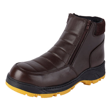 Botas hechas para durar. Fratello presenta calzado industrial con diseño reforzado, ideal para quienes trabajan en construcción, talleres o fábricas. Su estructura sólida y tracción superior las hacen indispensables. ¡Haz clic y camina con seguridad todo el día! Fratello botas industriales para hombre, modelo en color café, elaborado en piel, tubo de 11 cm de altura, y 32 cm de circunferencia, tipo de ajuste con cremallera al tono en los costados, cuenta con casquillo de protección de poliamida, con buyón acolchado, suela sintética con un alto de 4 cm, suela sintética, forro textil, tallas disponibles 25/29 incluyendo medias tallas, modelo con horma normal (talla fiel), te sugerimos adquirir talla habitual. Haz que cada paso cuente con Zapatería Fratello, calzado 100% mexicano. Ponte zapatos, no límites. Compra los tuyos ahora.