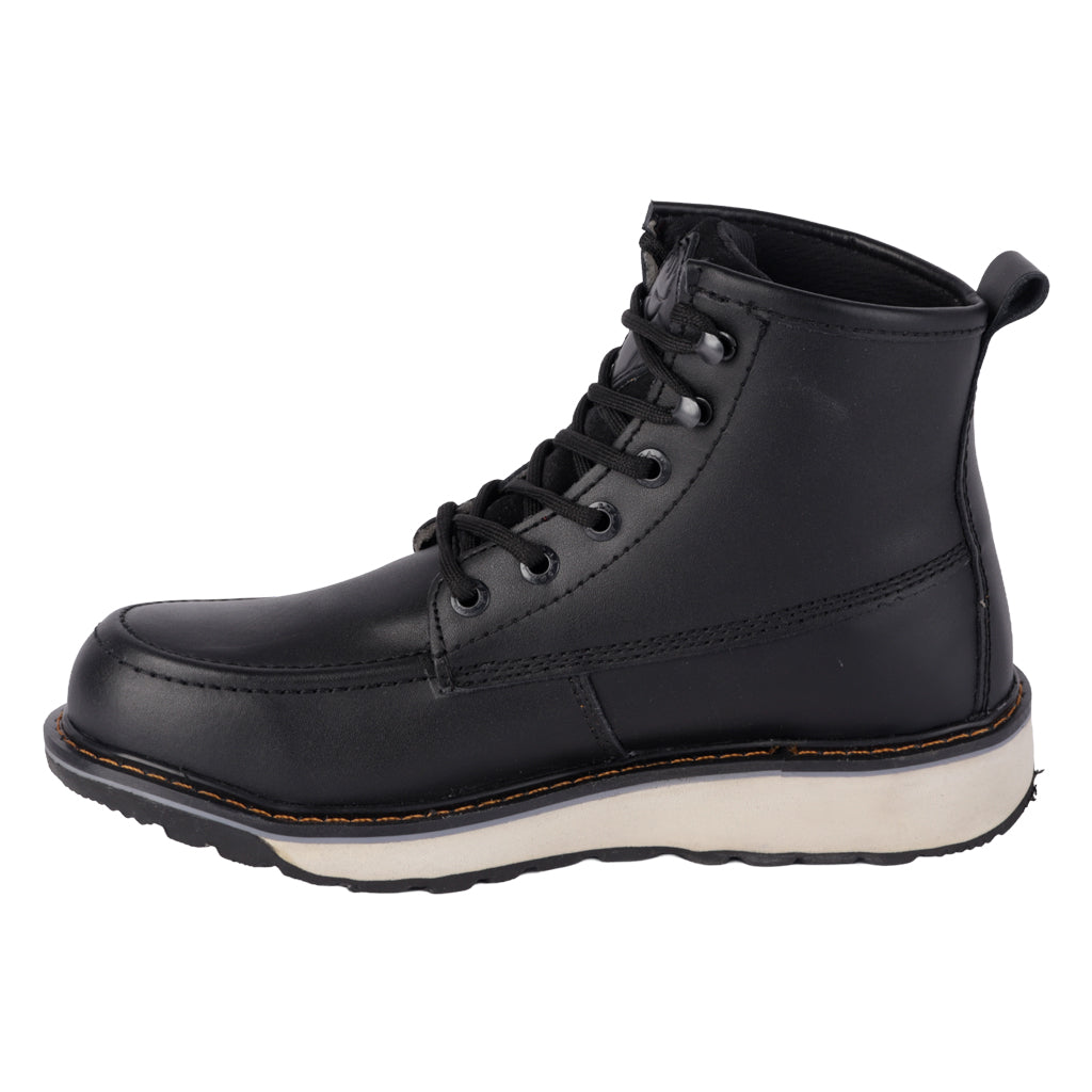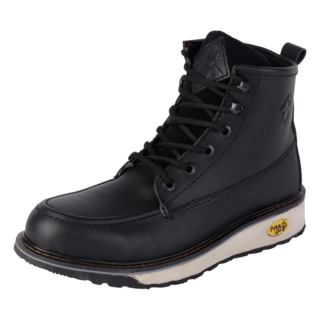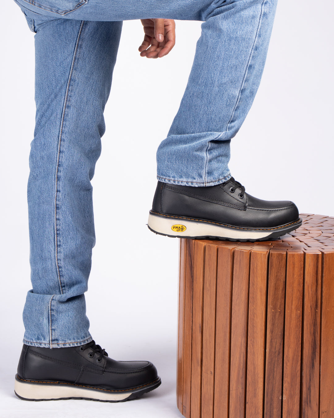 Para el hombre práctico, pero con estilo. Las botas de trabajo Fratello combinan un diseño sobrio con seguridad. Perfectas para el trabajo o el fin de semana. ¡Compra en línea y pisa con determinación! PMA botas de trabajo para hombre, modelo en color negro, elaborado en piel, tubo de 12 cm de altura, y 33 cm de circunferencia, tipo de ajuste con agujetas, suela sintética con un alto de 4 cm, suela resistente al aceite y a los deslizamientos, forro textil, tallas disponibles 25/29 incluyendo medias tallas, modelo con horma normal (talla fiel), te sugerimos adquirir talla habitual. Haz que cada paso cuente con Zapatería Fratello, calzado 100% mexicano. Ponte zapatos, no límites. Compra los tuyos ahora.