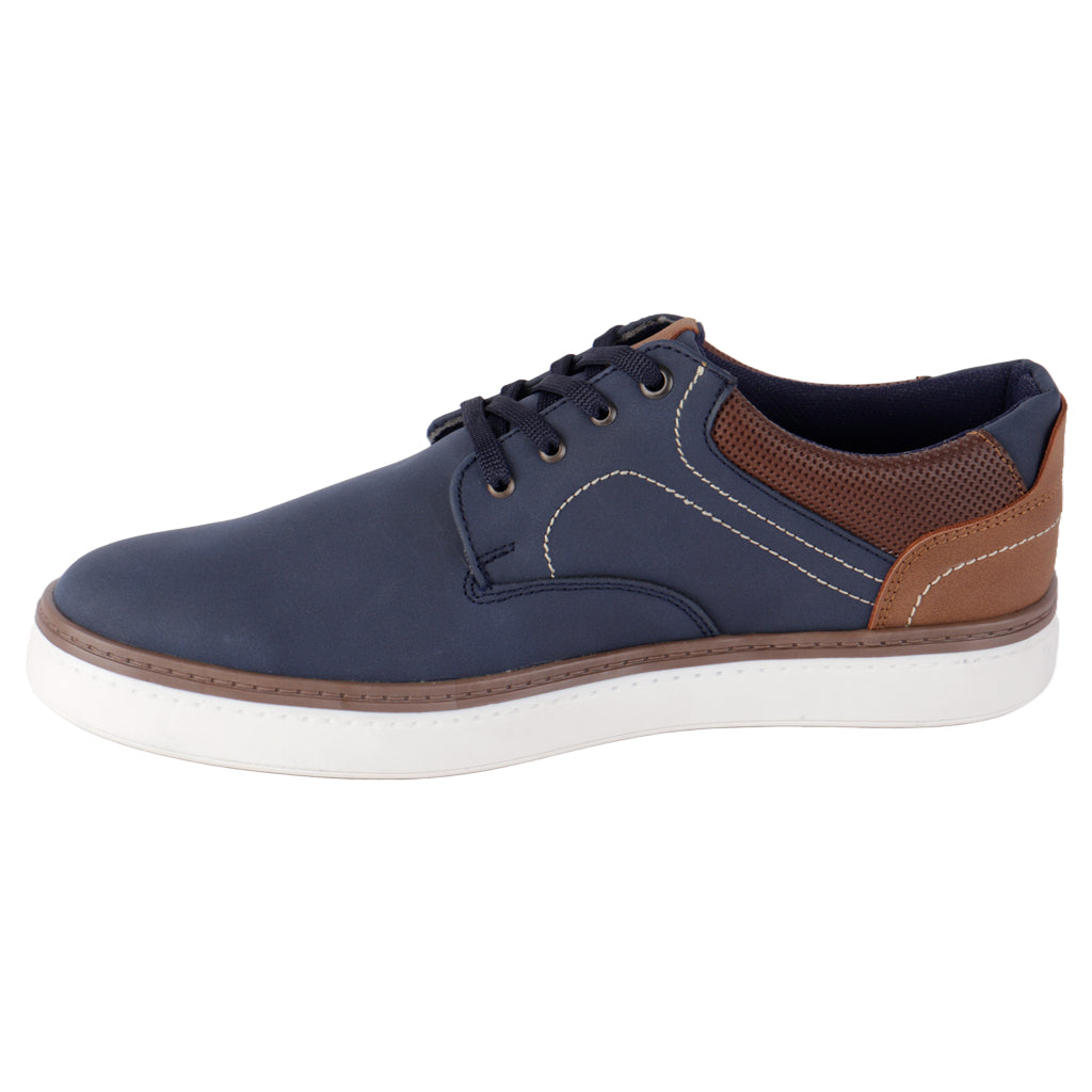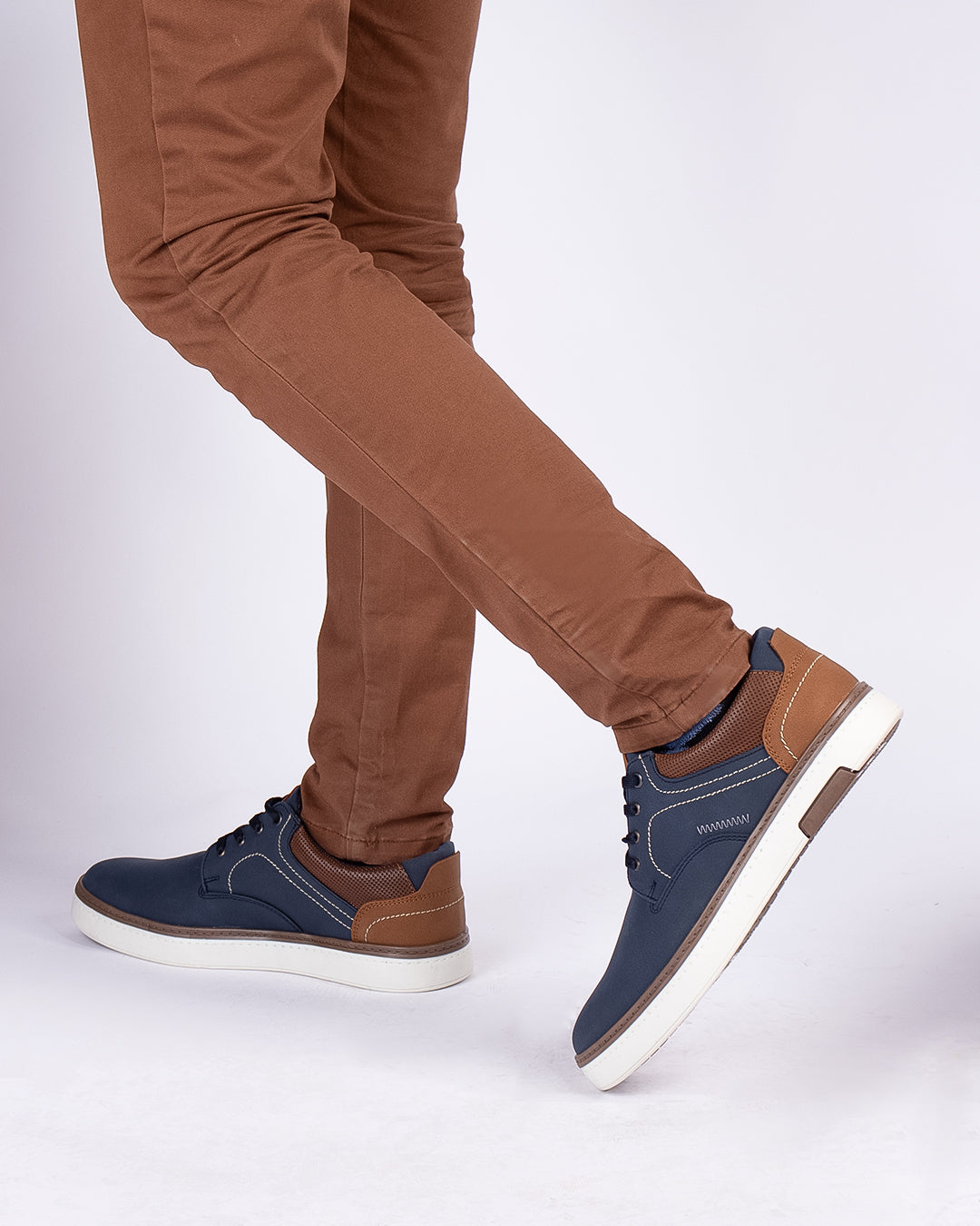 Con Fratello, lo casual se vuelve sofisticado. Estos zapatos están pensados para brindar un look relajado, pero con presencia. Llévalos con mezclilla, pantalón recto o hasta con blazer. ¡Compra online y luce increíble sin esfuerzo! Zapatería Fratello zapatos casuales para hombre, modelo en color azul marino en combinación con café, elaborado en material sintético, tipo de ajuste con agujetas, suela antideslizante con un alto de 3 cm, suela sintética, forro sintético, tallas disponibles 25.5/29 incluyendo medias tallas, modelo con horma normal (talla fiel), te sugerimos adquirir talla habitual. Haz que cada paso cuente con Zapatería Fratello, calzado 100% mexicano. Ponte zapatos, no límites. Compra los tuyos ahora.