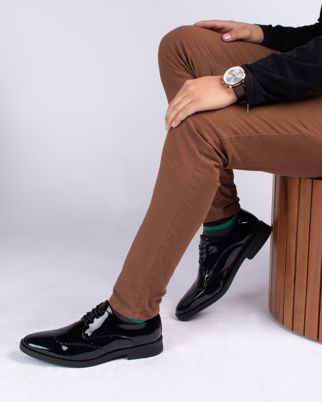 La elección perfecta para un atuendo elegante. Estos zapatos de vestir Fratello están hechos con materiales de calidad y un diseño que aporta presencia a cualquier look. ¡Haz clic y pisa con firmeza en tus eventos más importantes! Fratello zapato casual para hombre, en color negro, modelo elaborado en charol, cuenta con diseño en corte laser, tipo de cierre con agujetas al tono suela sintética antideslizante, cuenta con tacón ancho, con un alto de 3 cm forro textil, tallas disponibles 25/29 incluyendo medias tallas, modelo con horma normal (talla fiel), te sugerimos adquirir talla habitual. Haz que cada paso cuente con Zapatería Fratello, calzado 100% mexicano. Ponte zapatos, no límites. Compra los tuyos ahora.
