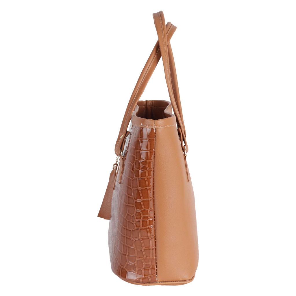 Lleva tu estilo a otro nivel con nuestros bolsos de mujer. Diseños exclusivos, a la moda y perfectos para cualquier ocasión. ¡Compra ahora y agrégalo a tu carrito! Fratello bolso color camel para mujer, diseño elaborado en material charol sintético de alta calidad, diseño con textura de bibora, borla de adorno en tono camel, cuenta con un compartimento amplio interno, tipo de cierre con cremallera, cómodo tirante ajustable desmontable, asa superior de transporte, forro textil, diseñada con una medida de 30 cm de alto x 25 cm de ancho y 12 cm de profundidad con capacidad de 9 litros. Complementa tu estilo con accesorios de Zapatería Fratello, destacando la calidad y precio de la vanguardia mexicana.