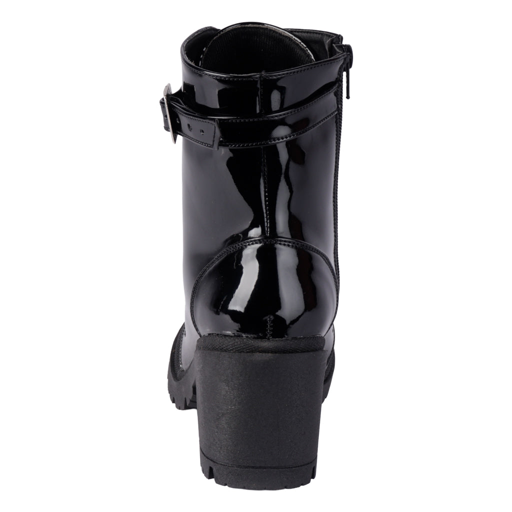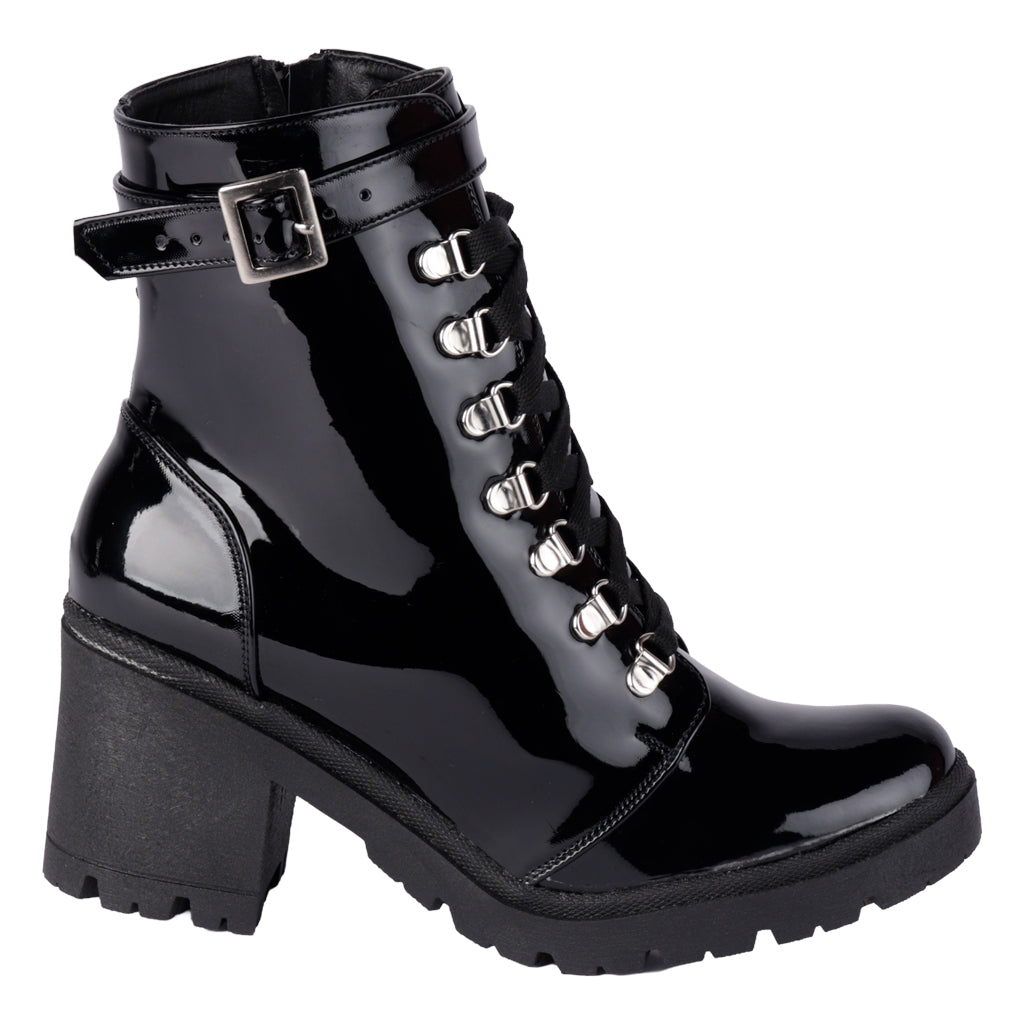 Con Fratello, cada día empieza con estilo. Las botas casuales para mujer están hechas para combinar con tus looks favoritos de temporada. Su diseño cómodo, cálido y versátil las convierte en el complemento ideal para el frío. ¡Haz clic y descubre el par que te acompañará todo el invierno! Fratello botas casuales para mujer, estilo combat, modelo en color negro, elaborado en material sintético charol, cuenta con pulsera con hebilla sin función de ajuste color plata, tubo de 14 cm de altura, y 30 cm de circunferencia, tipo de cierre con cremallera en lateral interno, con agujetas al tono, suela sintética antideslizante, tacón ancho con un alto de 8 cm, forro sintético, tallas disponibles 22/26 incluyendo medias tallas, modelo con horma normal, adquirir talla habitual. Haz que cada paso cuente con Zapatería Fratello, calzado 100% mexicano. Ponte zapatos, no límites. Compra los tuyos ahora.