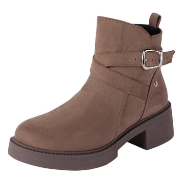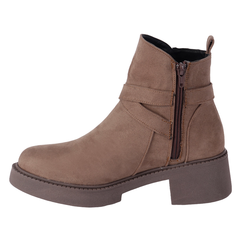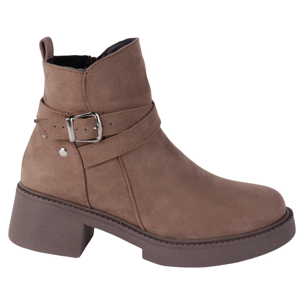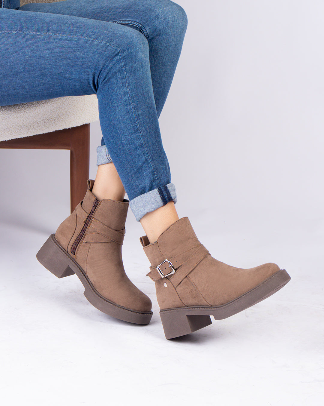 Si hay un calzado que no puede faltar en tu armario este otoño-invierno, son los botines. Fratello presenta modelos cómodos, modernos y perfectos para climas frescos. Lúcelos con tus prendas favoritas y prepárate para caminar con confianza y mucho estilo. ¡Haz clic y descubre la colección! Fratello botín para mujer, modelo en color café, elaborado en material sintético, con hebilla al tono sin función de ajuste, tubo de 12 cm de altura, y 30 cm de circunferencia, tipo de cierre con cremallera en lateral interno, suela sintética antideslizante, con tacón ancho con un alto de 5 cm, forro sintético, tallas disponibles 23/26 incluyendo medias tallas, modelo con horma normal, adquirir talla habitual. Haz que cada paso cuente con Zapatería Fratello, calzado 100% mexicano. Ponte zapatos, no límites. Compra los tuyos ahora.