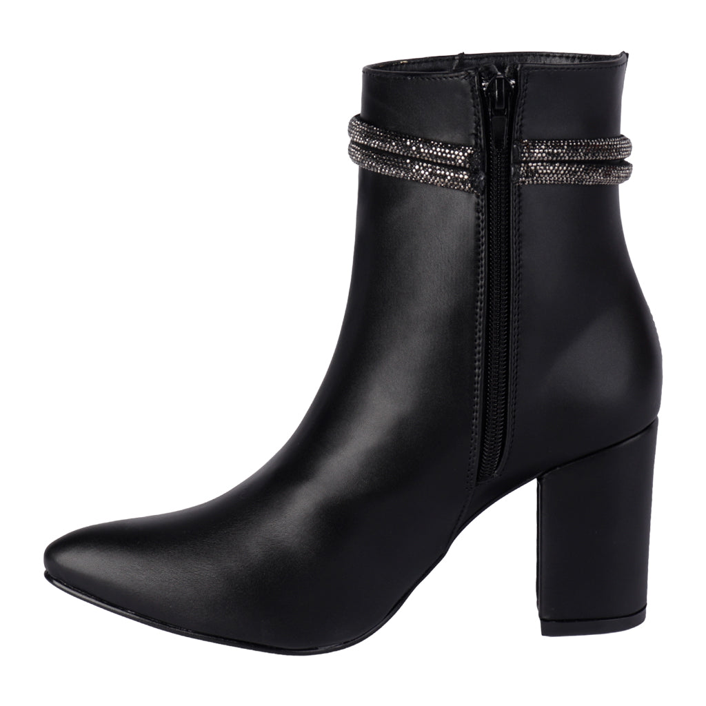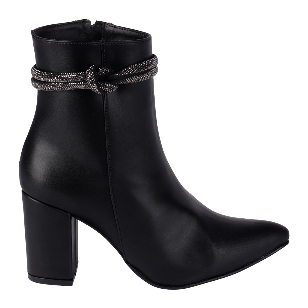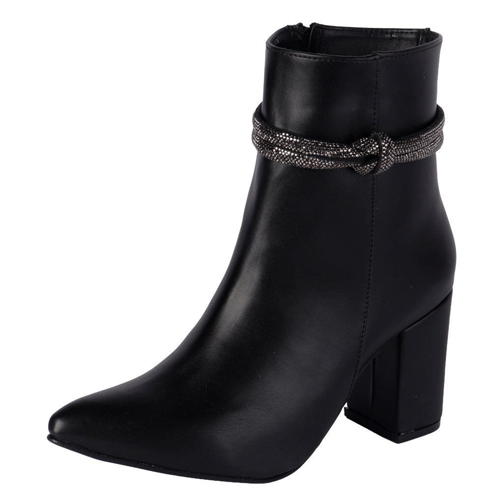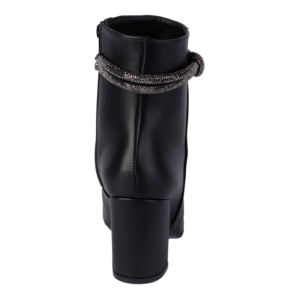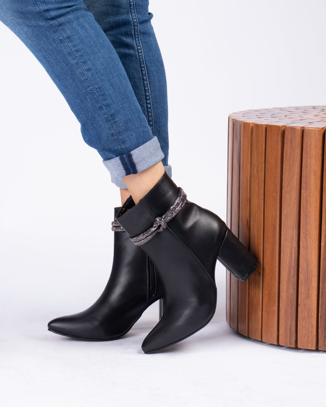 Botines Fratello: estilo urbano para mujeres auténticas. Esta temporada otoño-invierno, camina con seguridad y glamour con modelos que combinan perfectamente con jeans, leggins o vestidos. Dale vida a tu guardarropa con calzado cómodo y moderno. ¡Haz clic y recíbelos en la puerta de tu casa! Fratello botín casual para mujer, en color negro, modelo elaborado en material sintético, tubo de 14 cm de altura, y 29 cm de circunferencia, cuenta con pulsera en el tobillo y aplicación de pedrería, tipo de cierre con cremallera al tono, suela sintética pvc, cuenta con tacón escultural, con un alto de 7 cm forro sintético, tallas disponibles 23 al 26 incluyendo medias tallas, modelo con horma reducida, adquirir una talla más para mayor comodidad. Haz que cada paso cuente con Zapatería Fratello, calzado 100% mexicano. Ponte zapatos, no límites. Compra los tuyos ahora.