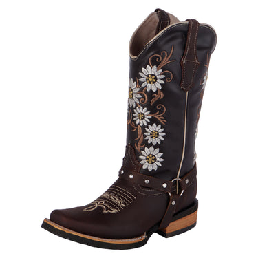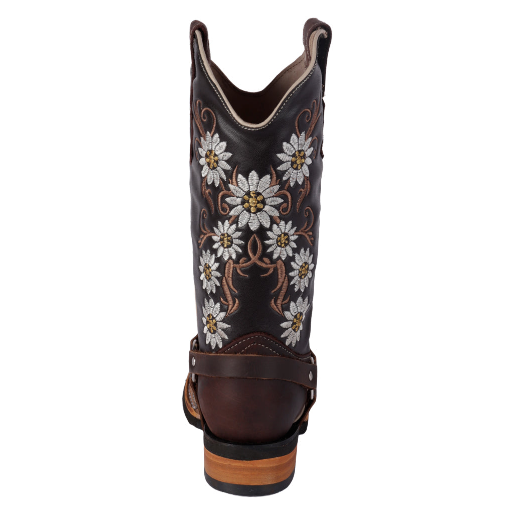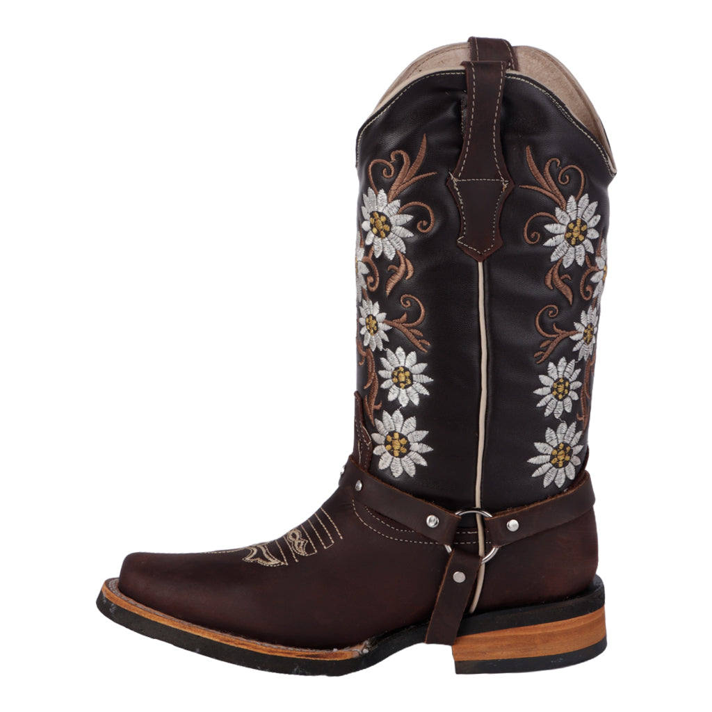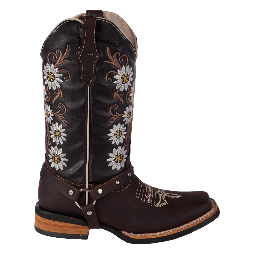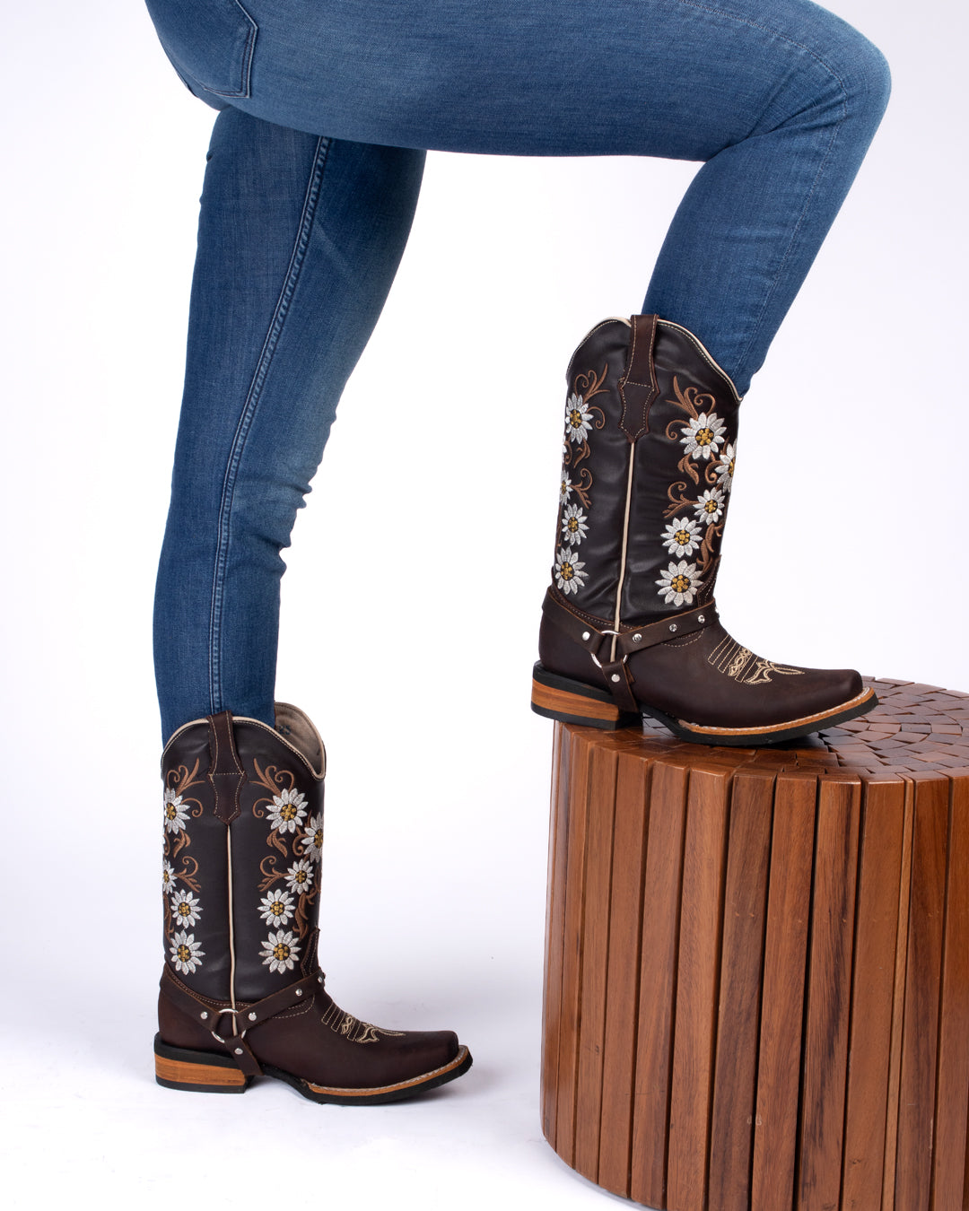 Añade un toque rebelde y femenino a tu outfit con las botas vaqueras Fratello. Su diseño clásico se adapta a las tendencias actuales, y su comodidad las hace perfectas para usar todo el día. ¡Compra en línea y crea looks únicos con esencia western! Fratello bota vaquera para mujer, en color chocolate, modelo elaborado en piel, tubo de 29 cm de altura, y 38 cm de circunferencia, cuenta con bordado de flores, tipo de cierre slip on, suela de hule, cuenta con tacón de bloque, con un alto de 4 cm forro de piel, tallas disponibles 22/26 incluyendo medias tallas, modelo con horma normal (talla fiel), te sugerimos adquirir talla habitual. Haz que cada paso cuente con Zapatería Fratello, calzado 100% mexicano. Ponte zapatos, no límites. Compra los tuyos ahora.