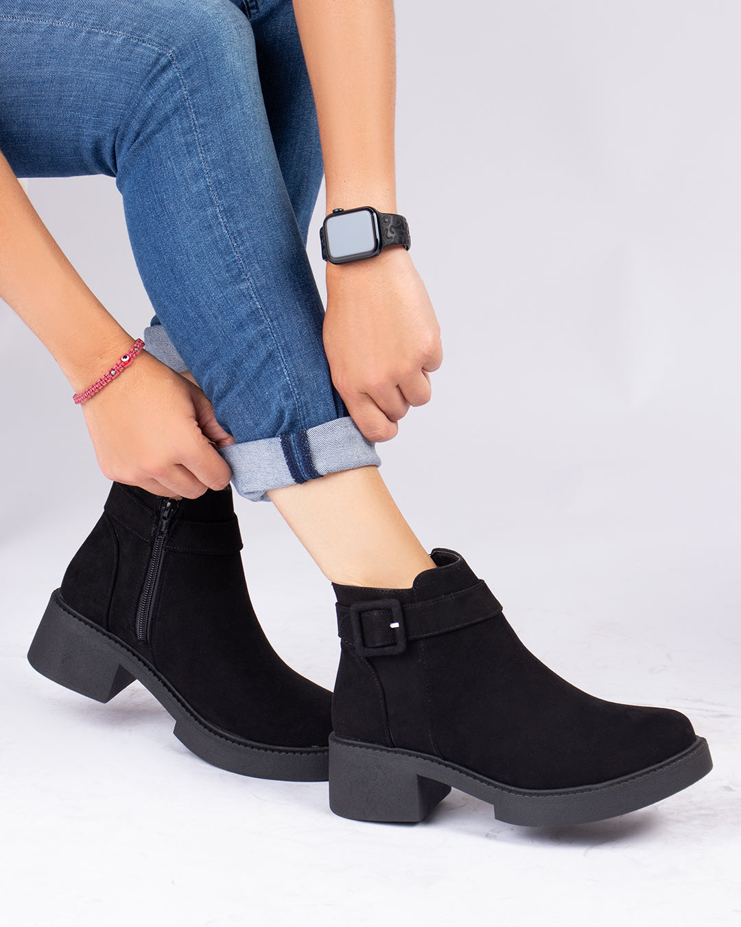 Los botines son el calzado perfecto para esta temporada. Fratello lo sabe, por eso te ofrece modelos pensados para mujeres con estilo. Elegantes, cálidos y combinables, son perfectos para el clima fresco. Haz que tus pasos hablen de ti. ¡Descubre la colección y encuentra el par que te define! Fratello botín para mujer, modelo en color negro, elaborado en material sintético, con elástico en lateral exterior, tubo de 12 cm de altura, y 30 cm de circunferencia, tipo de cierre con cremallera en lateral interno, suela sintética antideslizante, con tacón ancho con un alto de 5 cm, forro sintético, tallas disponibles 22/26 incluyendo medias tallas, modelo con horma normal, adquirir talla habitual. Haz que cada paso cuente con Zapatería Fratello, calzado 100% mexicano. Ponte zapatos, no límites. Compra los tuyos ahora.