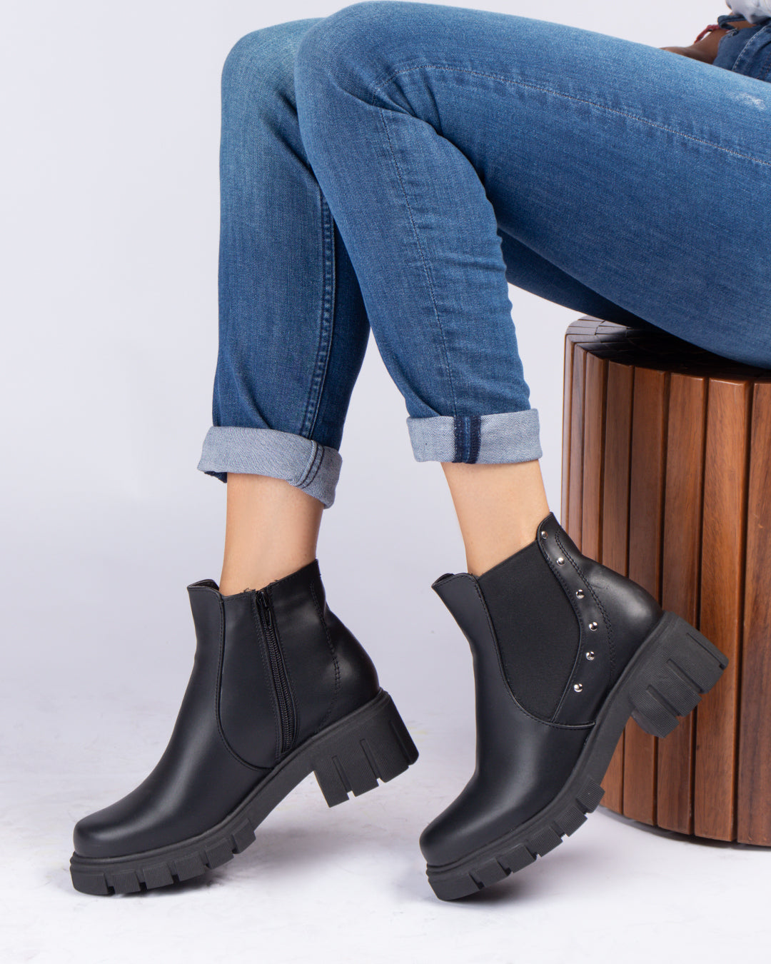 Botines de temporada que enamoran. Fratello te ofrece diseño, elegancia y comodidad en un solo par. Ideales para usar con abrigos, jeans o vestidos. Esta temporada, atrévete a destacar con botines que reflejan tu esencia. ¡Haz clic, ordénalos en línea y recibe tu estilo directamente en casa! Fratello botín para mujer, modelo en color negro, elaborado en material sintético, con elástico en lateral exterior, tubo de 12 cm de altura, y 27 cm de circunferencia, tipo de cierre con cremallera en lateral interno, suela sintética antideslizante, con tacón ancho con un alto de 6 cm, forro textil, tallas disponibles 22/26 incluyendo medias tallas, modelo con horma normal, adquirir talla habitual. Haz que cada paso cuente con Zapatería Fratello, calzado 100% mexicano. Ponte zapatos, no límites. Compra los tuyos ahora.