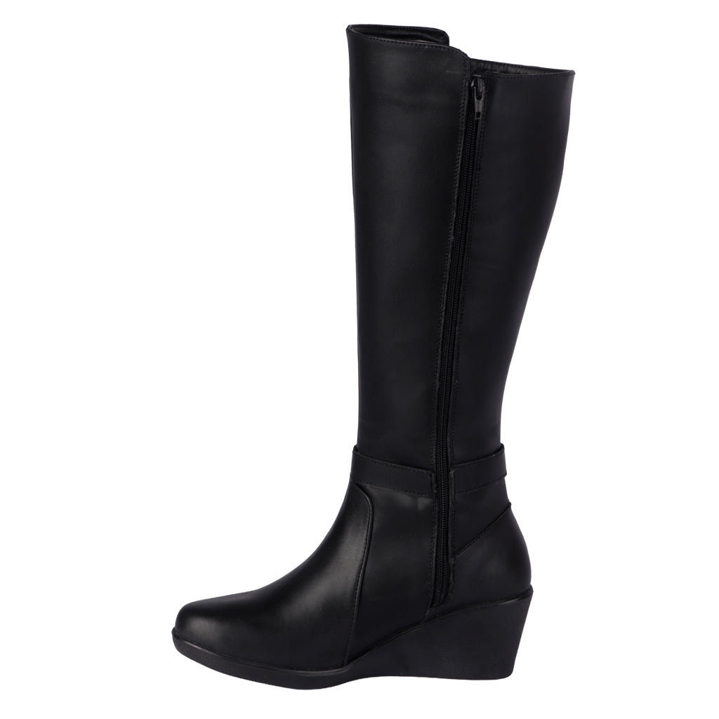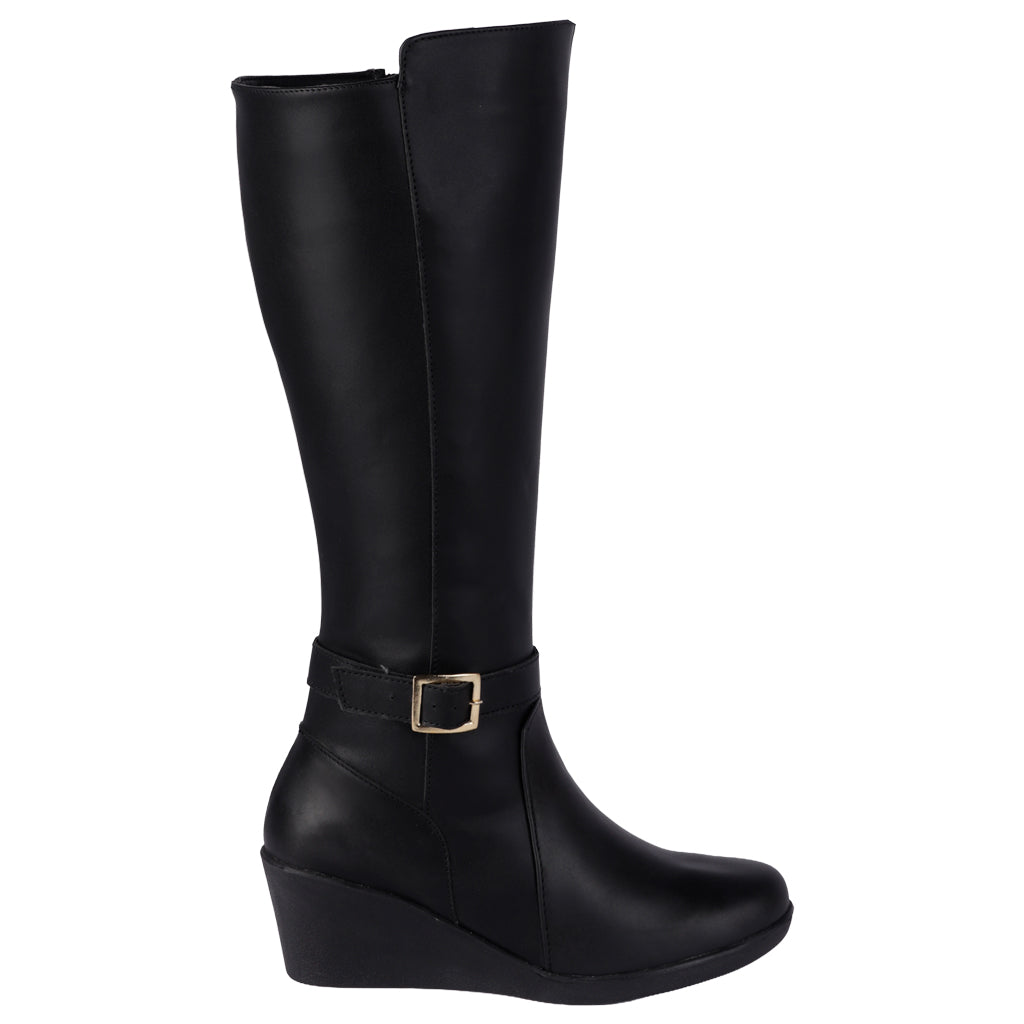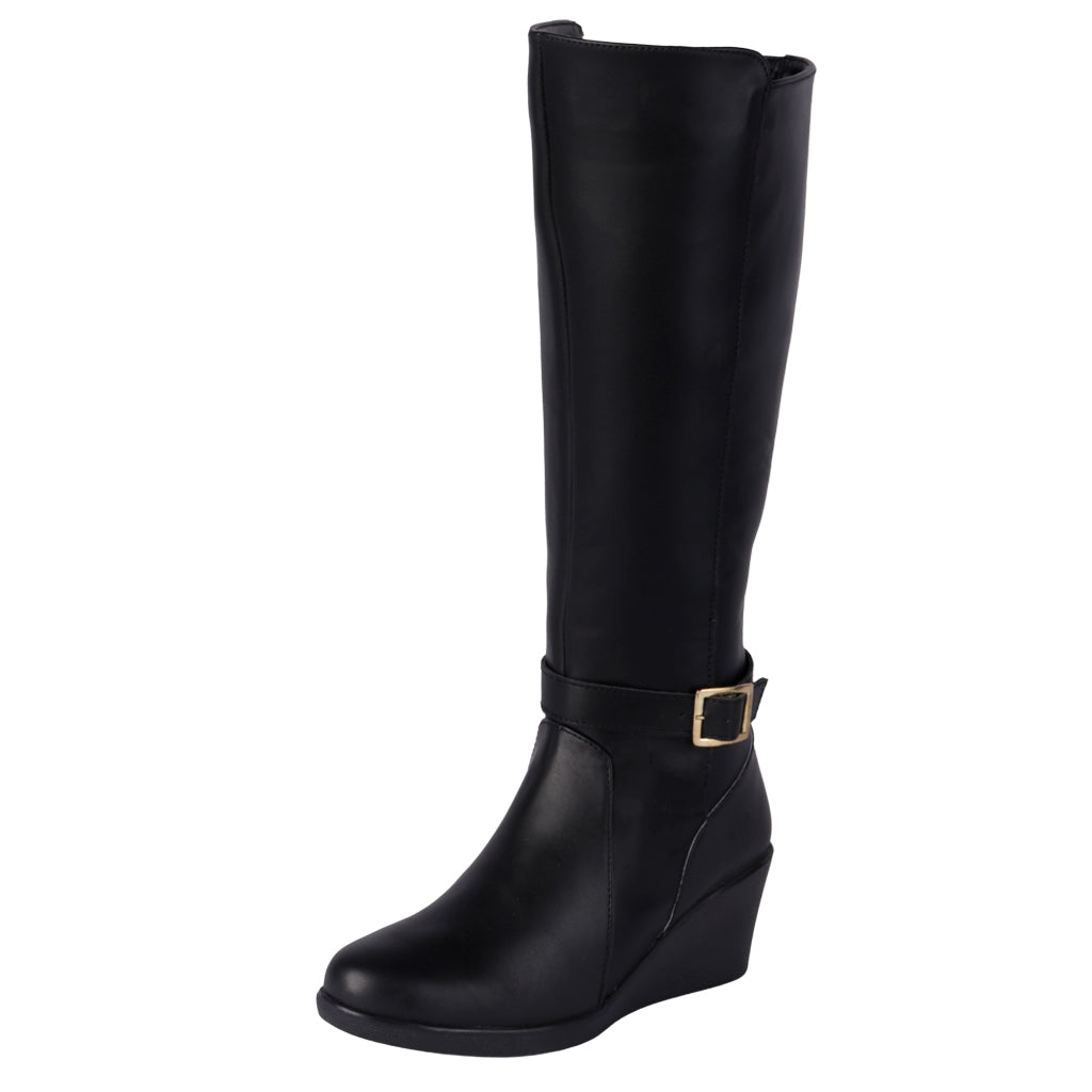 Este otoño-invierno, conquista las calles con las botas altas de Fratello. Su diseño elegante y moderno te ofrece soporte, abrigo y estilo en un solo calzado. Fáciles de combinar y perfectas para climas frescos. ¡Luce impecable y camina con seguridad en cualquier ocasión! Fratello bota alta para mujer, modelo en color negro, elaborado en material sintético, con hebilla sin función de ajuste en color oro, tubo de 38 cm de altura, y 40 cm de circunferencia, tipo de cierre con cremallera en lateral interno, suela sintética antideslizante, con tacón de cuña con un alto de 6 cm, forro sintético, tallas disponibles 22/26 incluyendo medias tallas, modelo con horma normal, adquirir talla habitual. Haz que cada paso cuente con Zapatería Fratello, calzado 100% mexicano. Ponte zapatos, no límites. Compra los tuyos ahora.