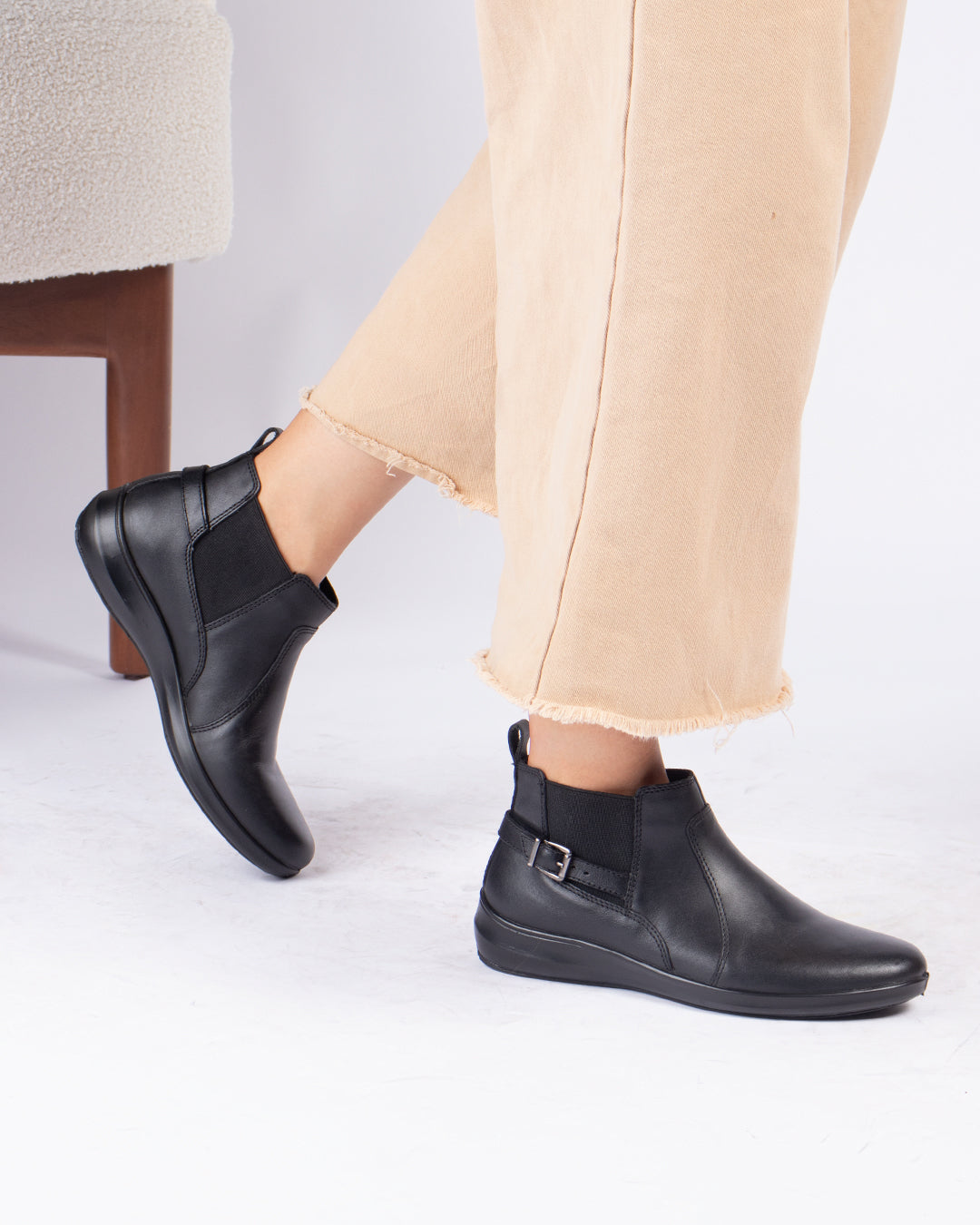 Los botines son el calzado perfecto para esta temporada. Fratello lo sabe, por eso te ofrece modelos pensados para mujeres con estilo. Elegantes, cálidos y combinables, son perfectos para el clima fresco. Haz que tus pasos hablen de ti. ¡Descubre la colección y encuentra el par que te define! Verde Tabaco botines para mujer, modelo en color negro, elaborado en material piel, tubo de 8 cm de altura, y 28 cm de circunferencia, cuenta con elástico al tono en lateral externo, con aplicación de hebilla sin función de ajuste color plata, tipo de cierre pull on, suela sintética antideslizante, suela con un alto de 3 cm, forro textil, tallas disponibles 22/26 incluyendo medias tallas, modelo con horma normal, adquirir talla habitual. Haz que cada paso cuente con Zapatería Fratello, calzado 100% mexicano. Ponte zapatos, no límites. Compra los tuyos ahora.