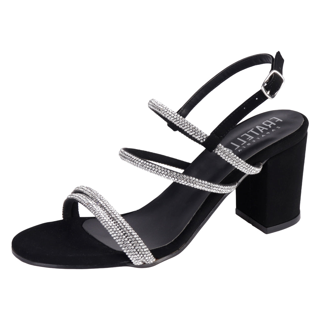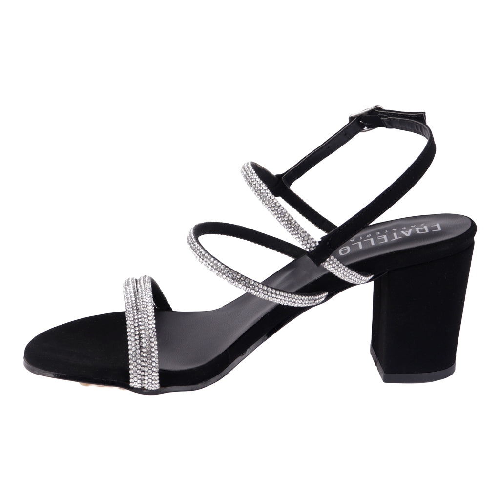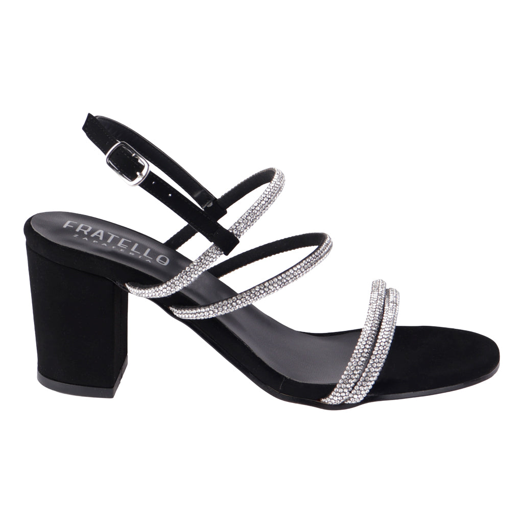 Estas zapatillas abiertas están hechas para mujeres seguras de sí mismas. Con tacón delgado y diseño delicado, estilizan tu figura sin esfuerzo. Perfectas para acompañar desde un look casual chic hasta uno formal. ¡Haz clic y hazlas parte de tu estilo diario! Fratello zapatilla abierta para mujer, en color negro, modelo elaborado en material buck, cuenta con doble pulsera con aplicación de pedrería, tipo de cierre con hebilla en tono plata, suela sintética cuenta con tacón de bloque, con un alto de 6 cm forro sintético, tallas disponibles 22/27 incluyendo medias tallas, modelo con horma normal (talla fiel), te sugerimos adquirir talla habitual. Haz que cada paso cuente con Zapatería Fratello, calzado 100% mexicano. Ponte zapatos, no límites. Compra los tuyos ahora.