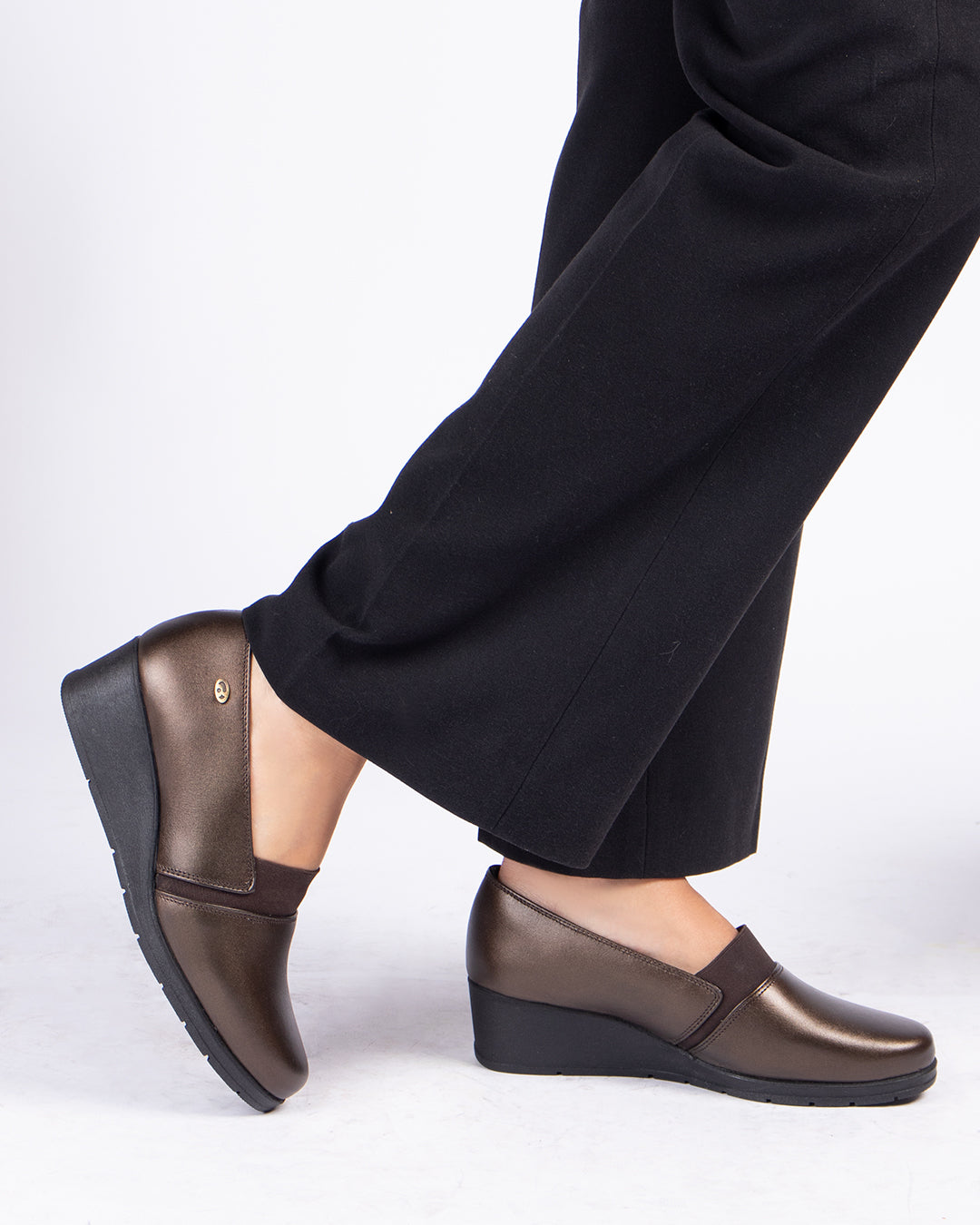Siente la diferencia con cada paso. Fratello te ofrece zapatos de plataforma que combinan diseño moderno, altura ideal y una estética poderosa. Perfectos para destacar. ¡Compra en línea y añade un toque atrevido a tu estilo! Fratello zapato casual para mujer, en color café oro, modelo elaborado en piel, cuenta con interior confort, tipo de cierre slip on, suela sintética ranil, cuenta con tacón cuña, con un alto de 4 cm forro porcino, tallas disponibles 23/27 incluyendo medias tallas, modelo con horma normal (talla fiel), te sugerimos adquirir talla habitual. Haz que cada paso cuente con Zapatería Fratello, calzado 100% mexicano. Ponte zapatos, no límites. Compra los tuyos ahora.