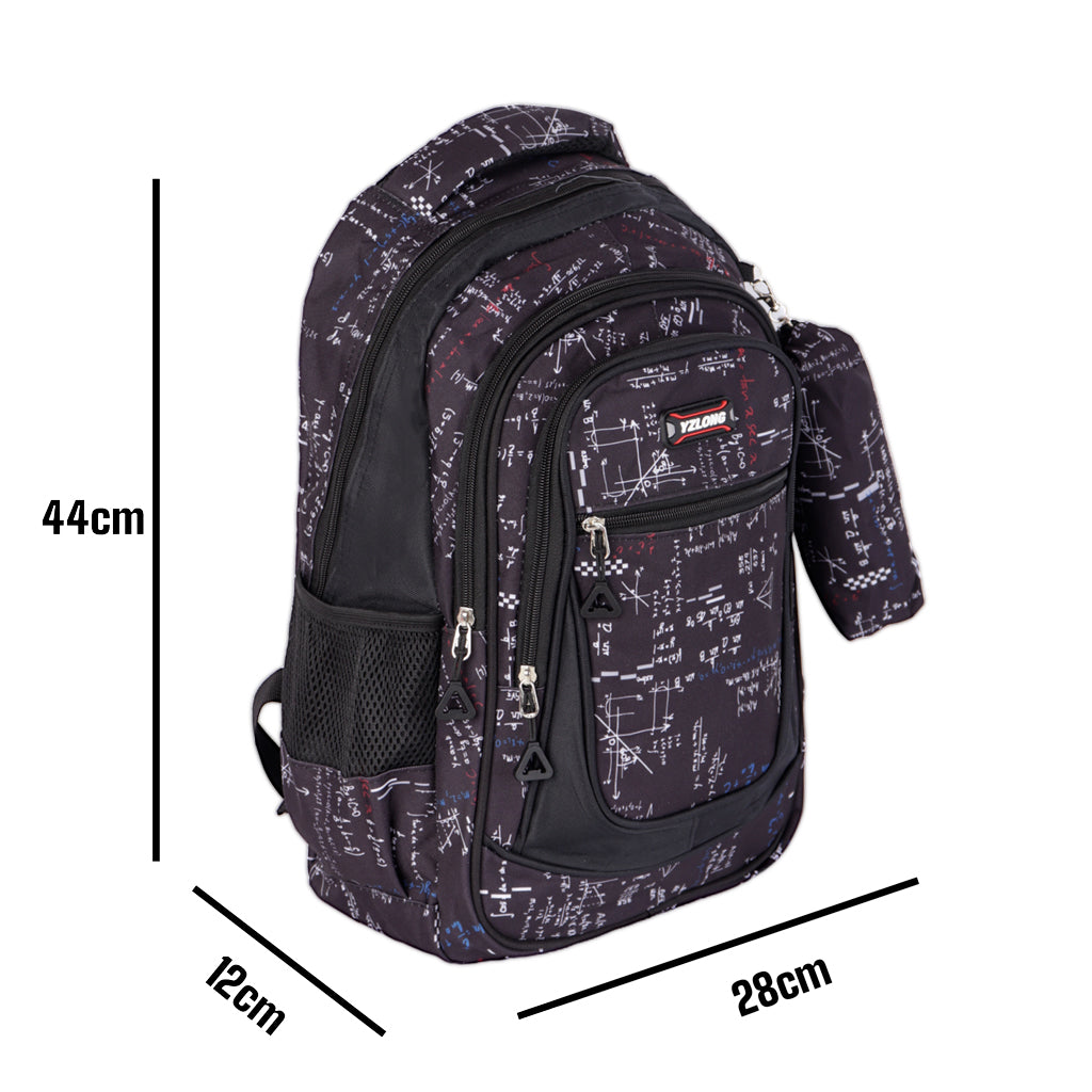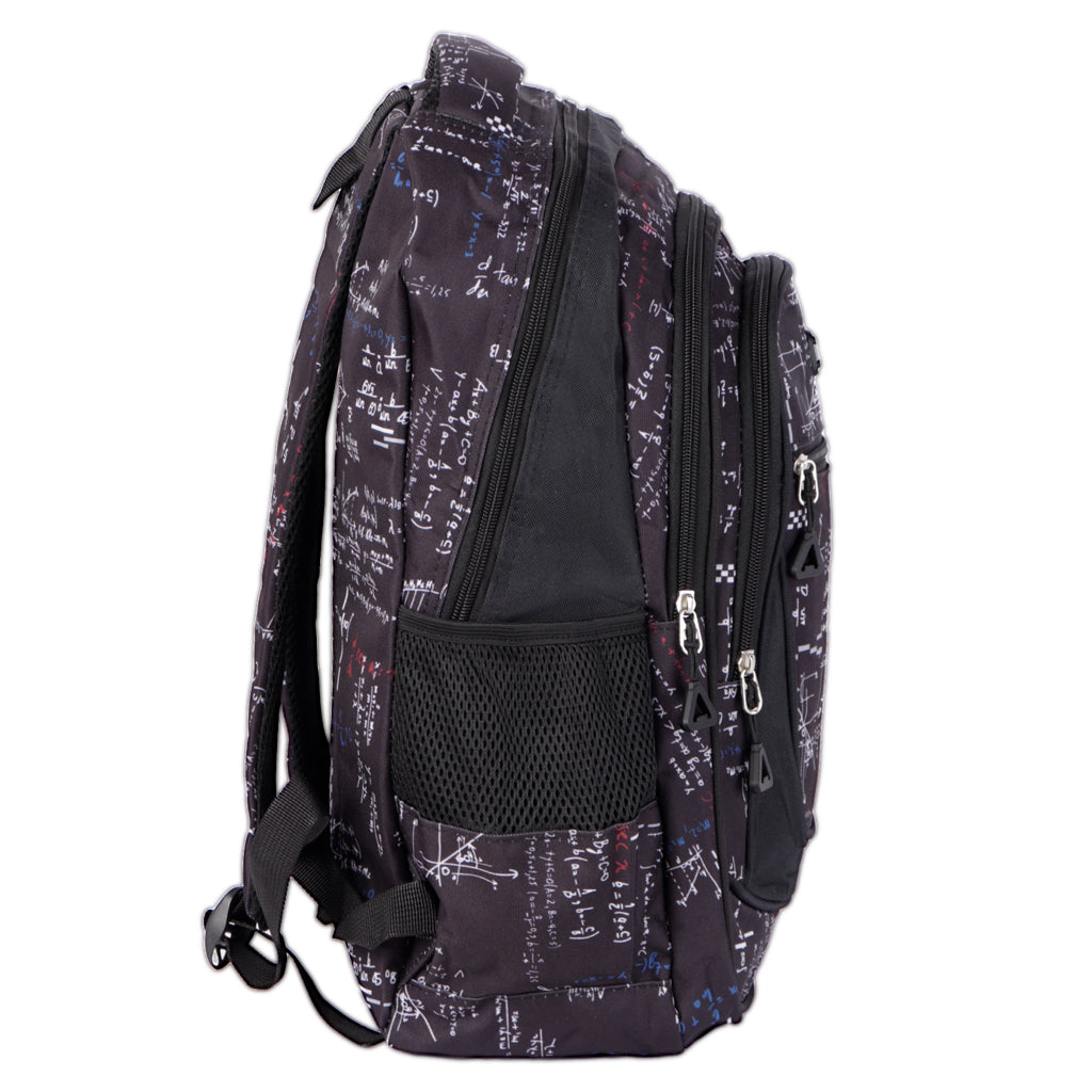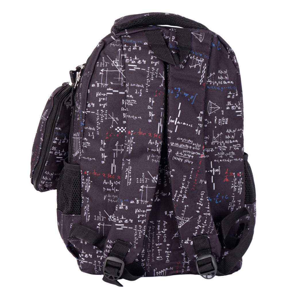 Un básico que nunca falla. Esta mochila unisex es ideal para quienes buscan practicidad y estilo sin complicaciones. Amplio espacio, diseño ligero y materiales duraderos. ¡Haz clic y hazla parte de tu rutina diaria! Fratello mochilas escolares unisex, color negro, elaborada en material textil, diseño de fórmulas, organización extra: con bolsillos en los laterales, cuenta con tres compartimentos amplios, tipo de cierre con cremallera, cómodos tirantes ajustables acolchados, con doble asa superior de transporte, con una cartuchera desmontable, mochila diseñada en medidas de 44 cm de largo, 28 de ancho y 12 cm de profundidad, con capacidad de 14.8 litros. Complementa tu estilo con accesorios de Zapatería Fratello, destacando la calidad y precio de la vanguardia mexicana.