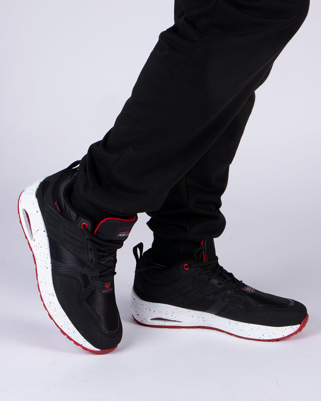 Muévete con libertad, pisa con control. Estos tenis deportivos Fratello combinan diseño moderno, suela antiderrapante y materiales resistentes para lograr el mejor desempeño. ¡Haz clic y empieza tu próxima rutina con el pie derecho! Fratello tenis deportivos para hombre, modelo en color negro con detalles en color rojo, elaborado en material sintético, tipo de ajuste con agujetas al tono, suela antideslizante con un alto de 4 cm, suela sintética con burbuja de aire, forro textil, tallas disponibles 25/29 incluyendo medias tallas, modelo con horma normal (talla fiel), te sugerimos adquirir talla habitual. Haz que cada paso cuente con Zapatería Fratello, calzado 100% mexicano. Ponte zapatos, no límites. Compra los tuyos ahora.