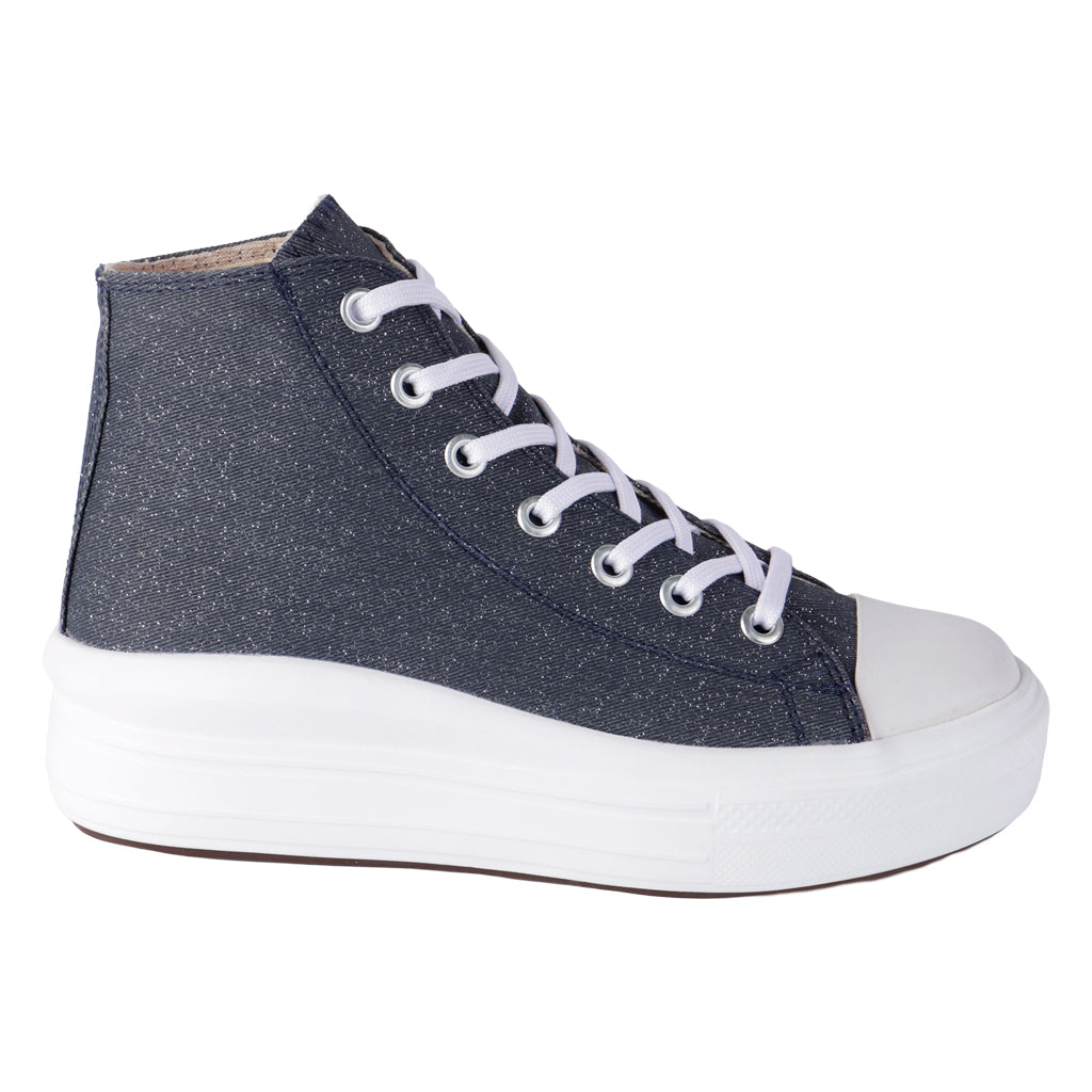 Los básicos que tu clóset necesita. Estos tenis casuales Fratello te acompañan en la rutina con un diseño limpio, femenino y actual. Fáciles de combinar y listos para cualquier plan. ¡Haz clic y lleva tu estilo a otro nivel! Fratello tenis casual para mujer, en color azul mezclilla, modelo elaborado en lona, cuenta con glitters, tipo de cierre con agujetas en tono blanco, suela sintética eva, cuenta con suela de plataforma, con un alto de 5 cm forro textil, tallas disponibles 22/26 incluyendo medias tallas, modelo con horma normal (talla fiel), te sugerimos adquirir talla habitual. Haz que cada paso cuente con Zapatería Fratello, calzado 100% mexicano. Ponte zapatos, no límites. Compra los tuyos ahora.