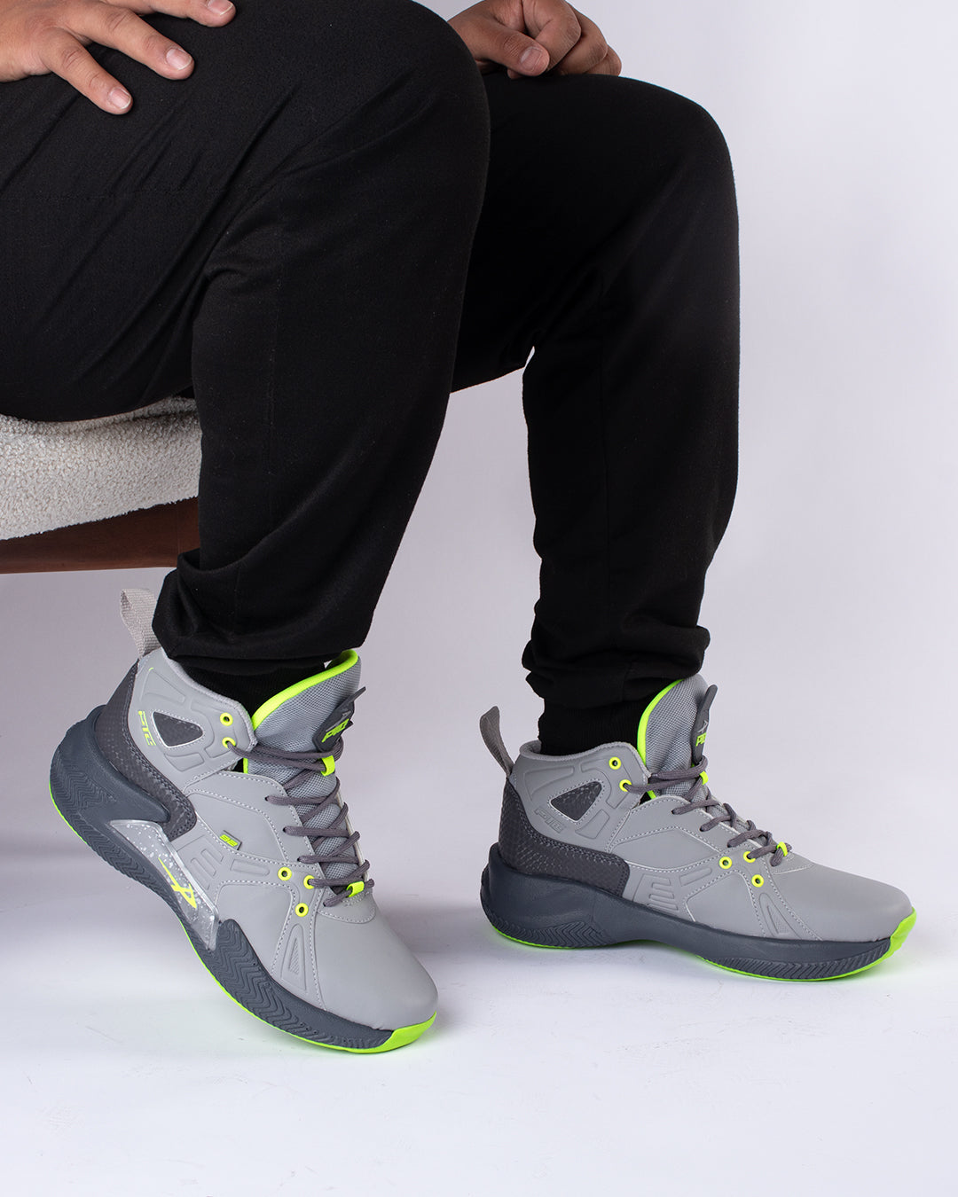 Control total desde el primer cuarto hasta el último. Estos tenis de básquetbol Fratello ofrecen sujeción lateral, suela antideslizante y diseño robusto para movimientos intensos. ¡Haz clic y eleva tu nivel! Fratello tenis deportivos para hombre, tenis para básquetbol, modelo en color gris en combinación con amarillo neón, elaborado en material sintético, tipo de ajuste con agujetas al tono, suela antideslizante con un alto de 5 cm, suela sintética, forro textil, tallas disponibles 25/29 incluyendo medias tallas, modelo con horma normal (talla fiel), te sugerimos adquirir talla habitual. Haz que cada paso cuente con Zapatería Fratello, calzado 100% mexicano. Ponte zapatos, no límites. Compra los tuyos ahora.